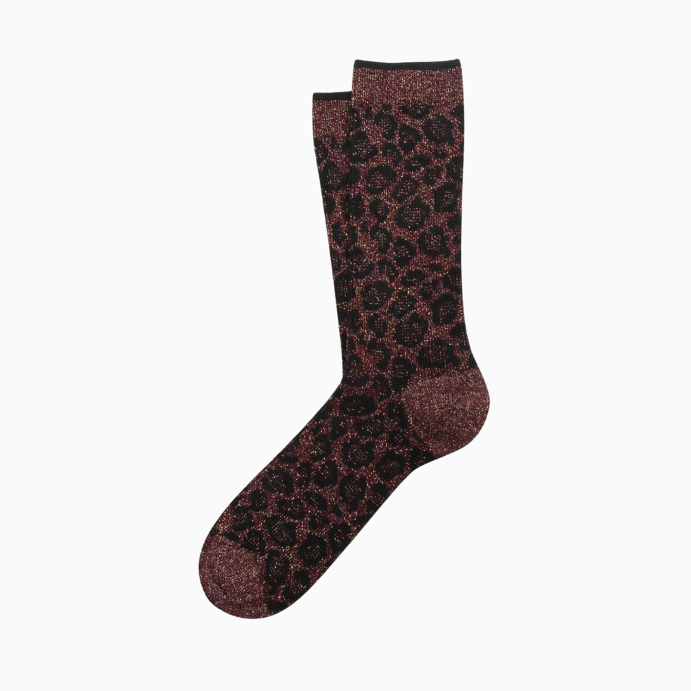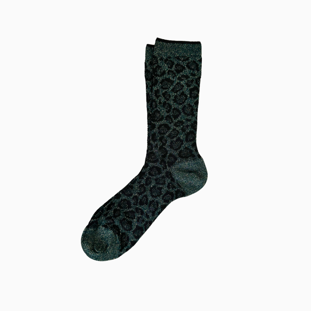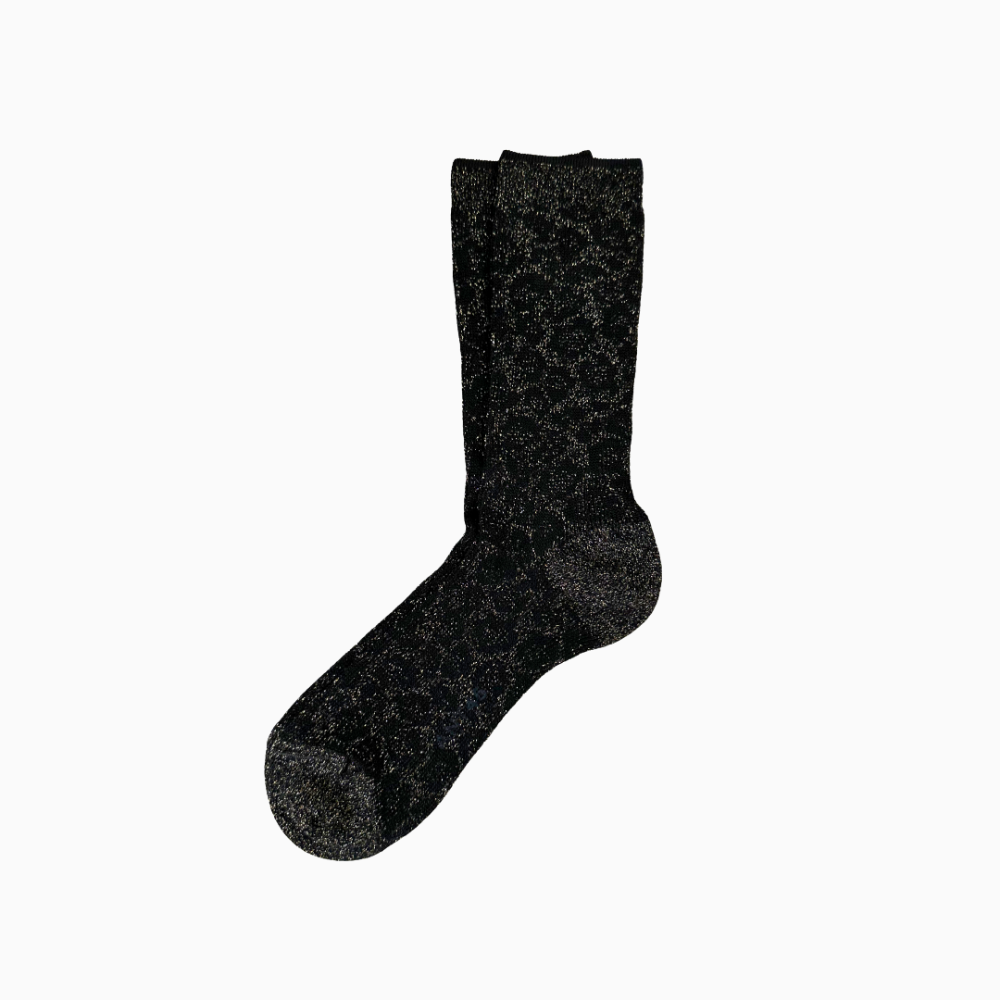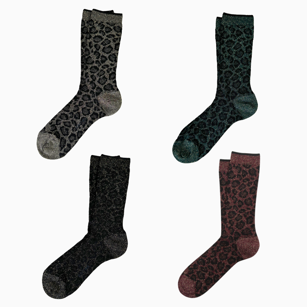 Mid-length ribbed sparkly leopard print socks