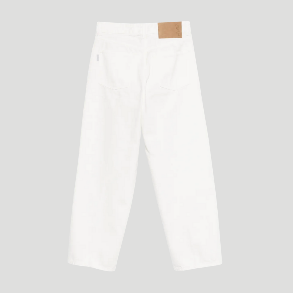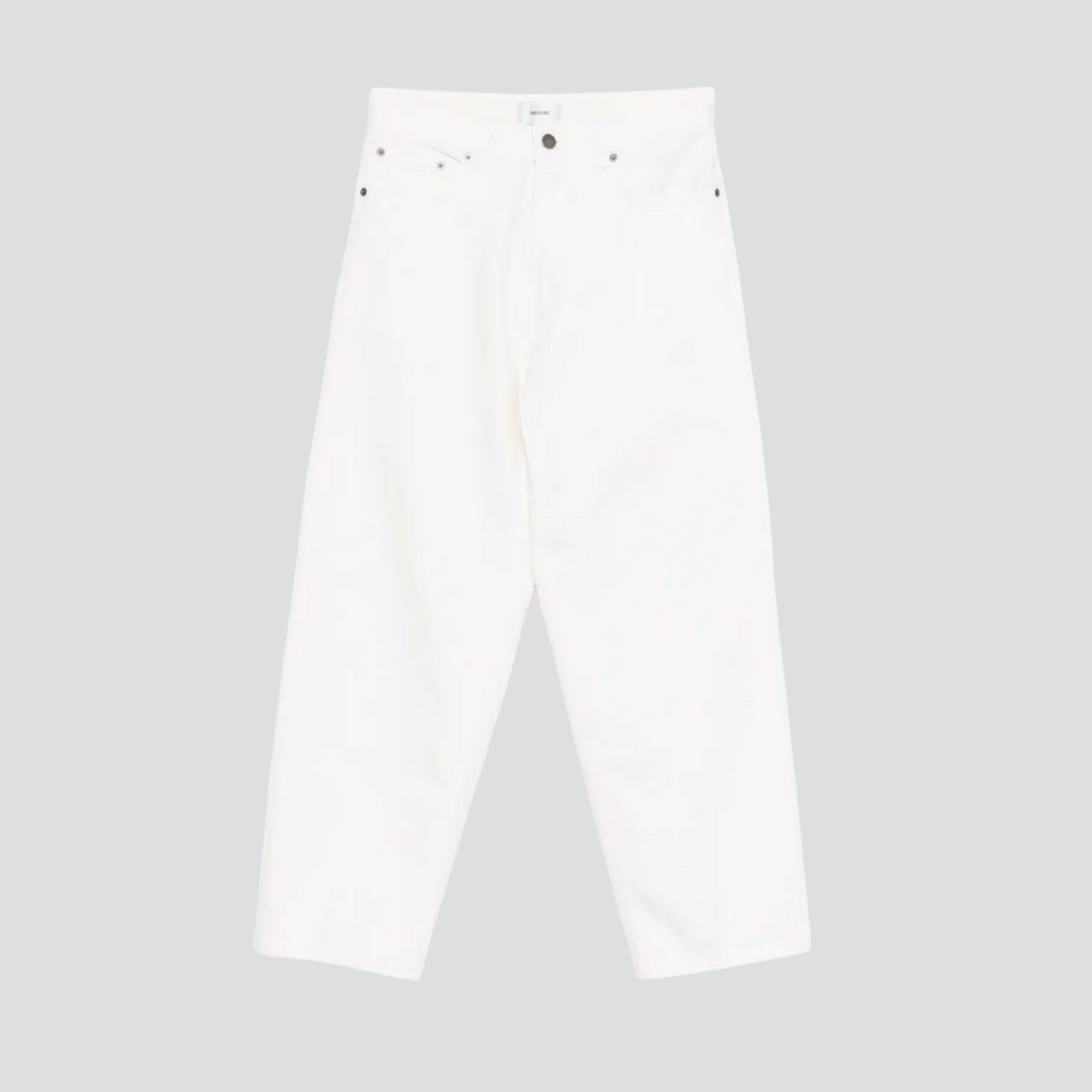 Boyfriend cut jeans with mid rise relaxed waist and slightly cropped length.