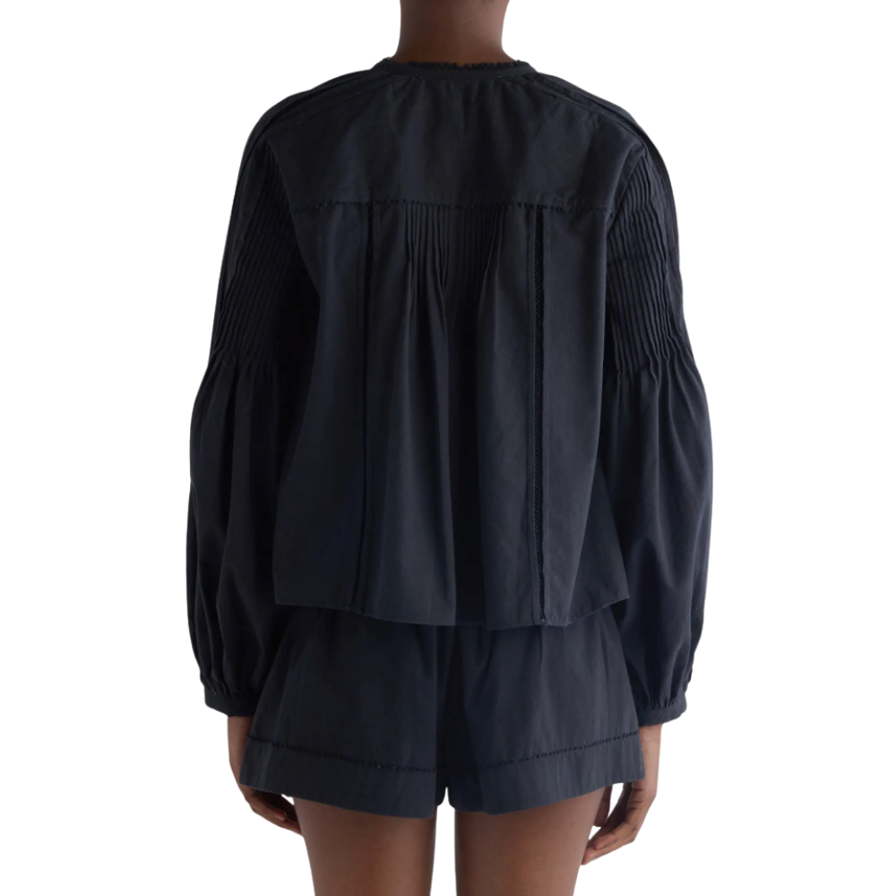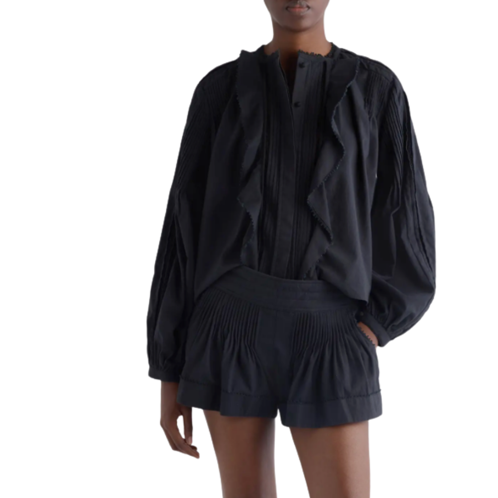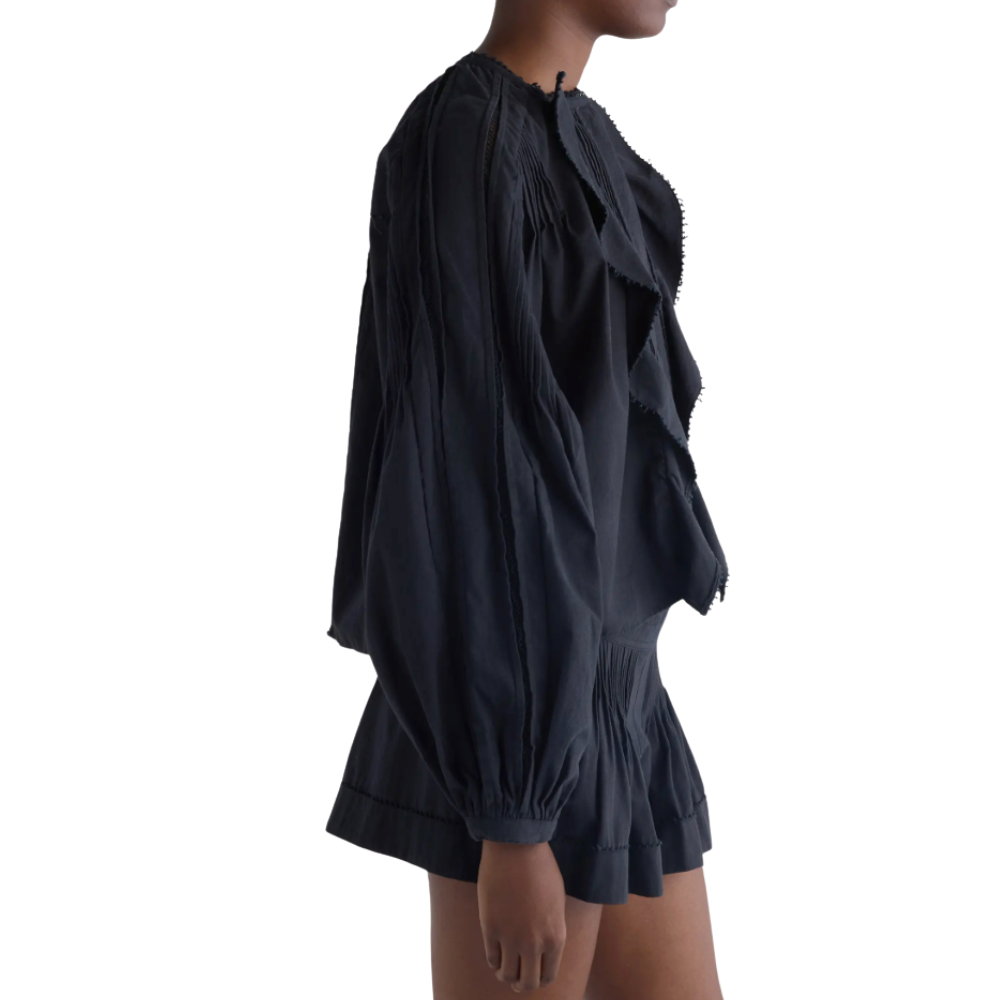 Isabel Marant Cubraly blouse in black cotton with detailing delicate embroidery throughout.