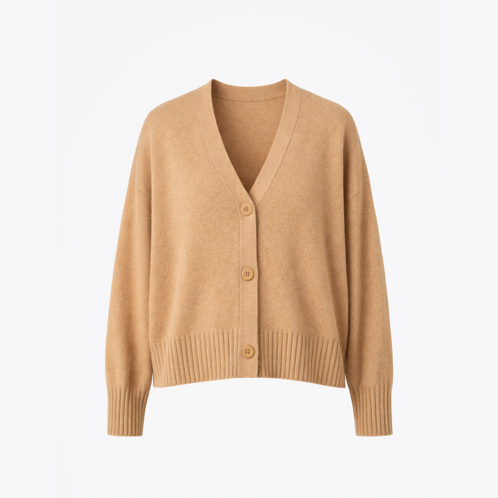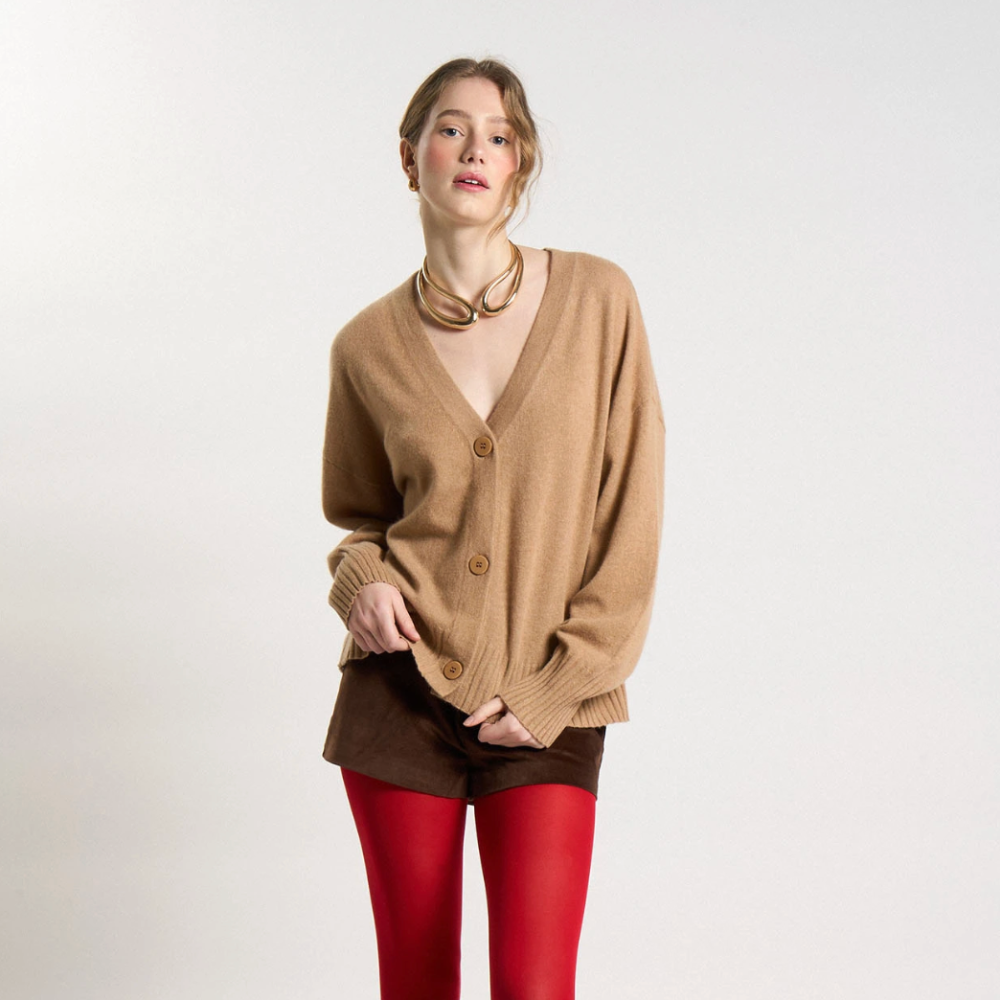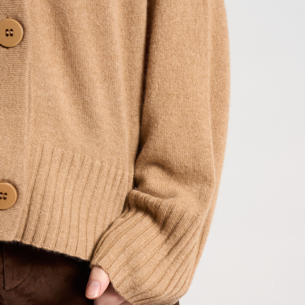 Luxurious cashmere cardigan with a relaxed fit in beige.