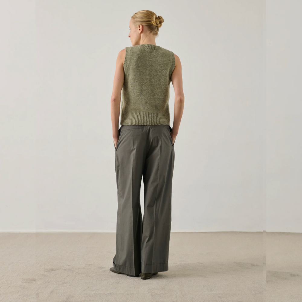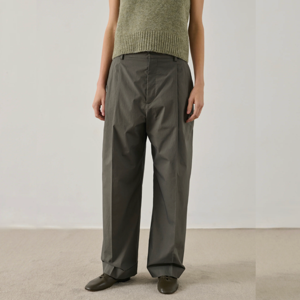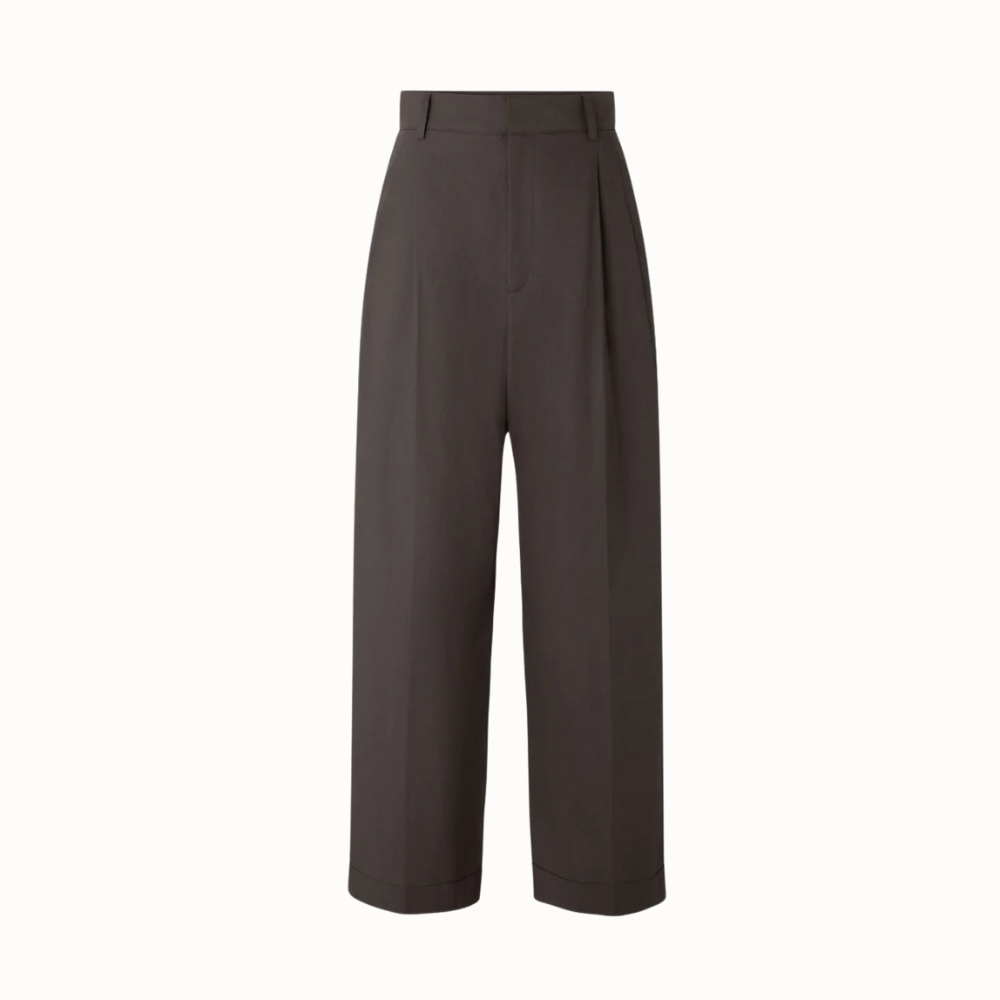 High-waisted pleated trousers with cuff hems