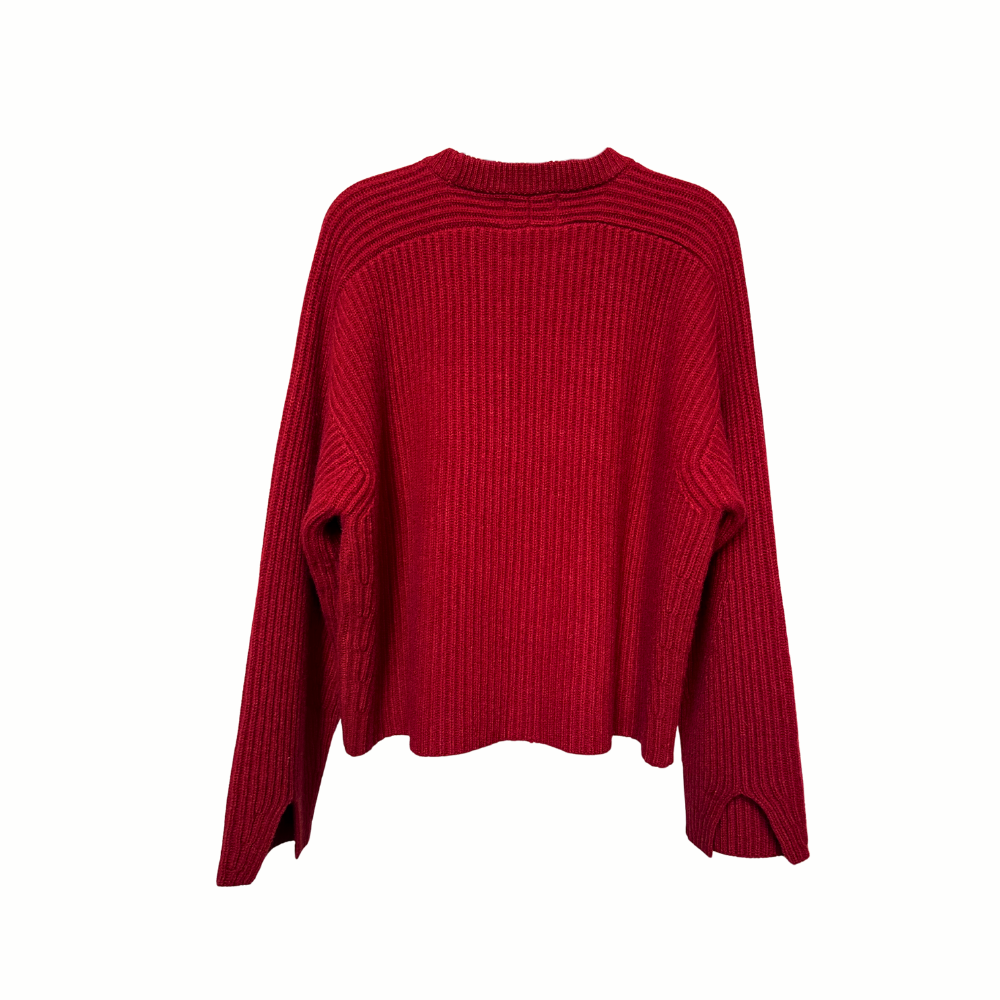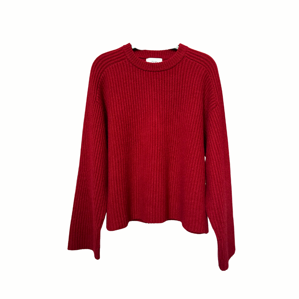 Luxurious cashmere ribbed long sleeved sweater with round neck.