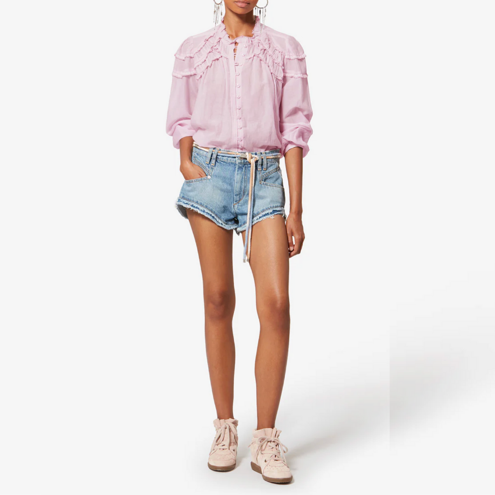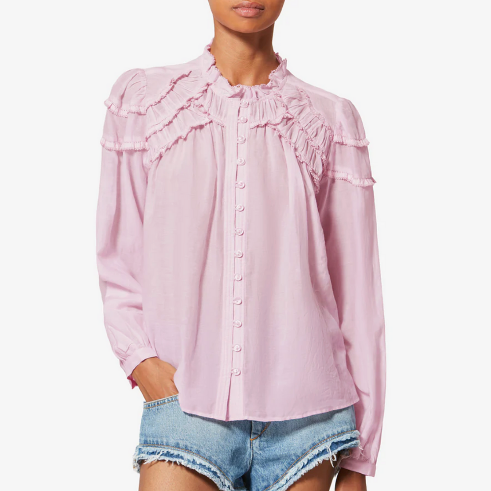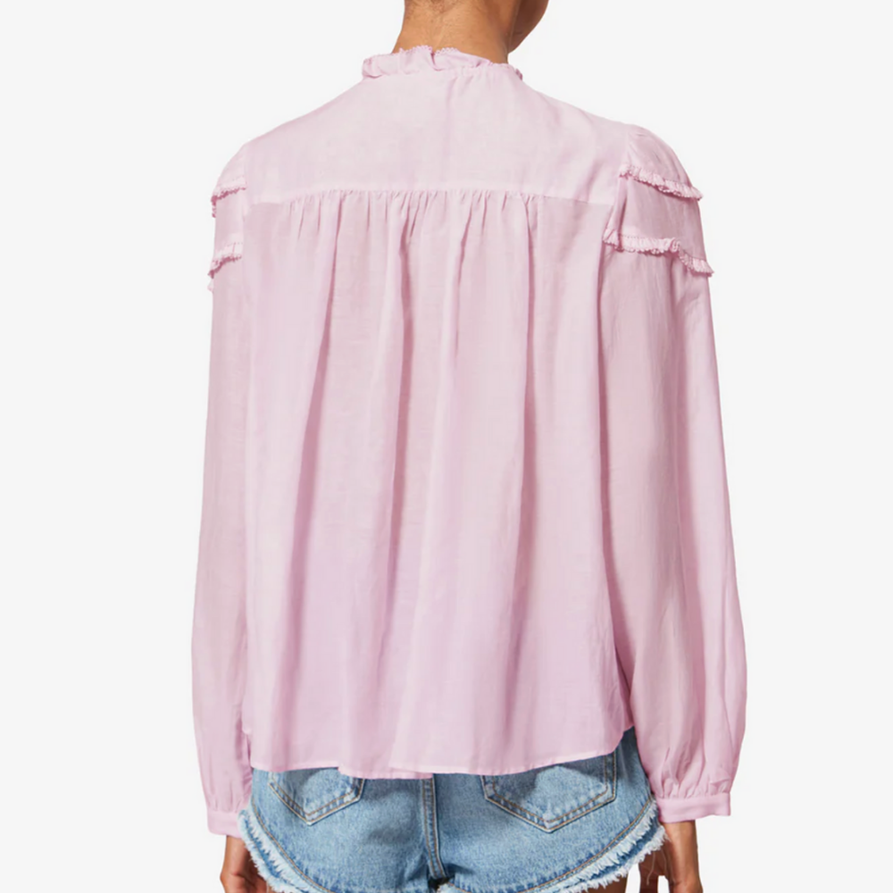 Christa blouse in blush pink cotton voile with a light embroidered hem throughout.