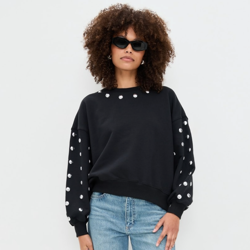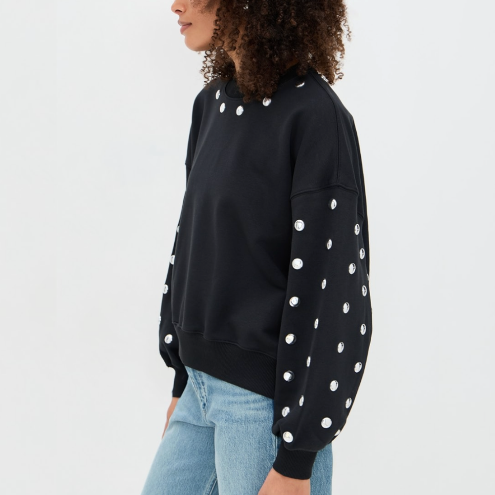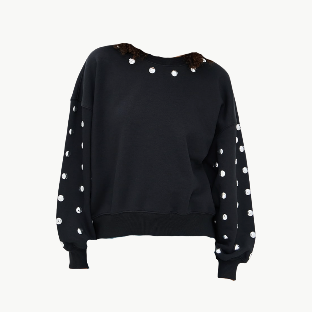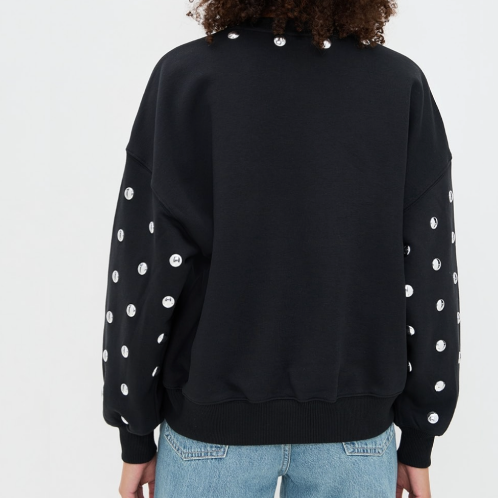 Soft sweatshirt with round ribbed neckline & wrists, chunky silver stud embellishment around the neckline and on the sleeves.