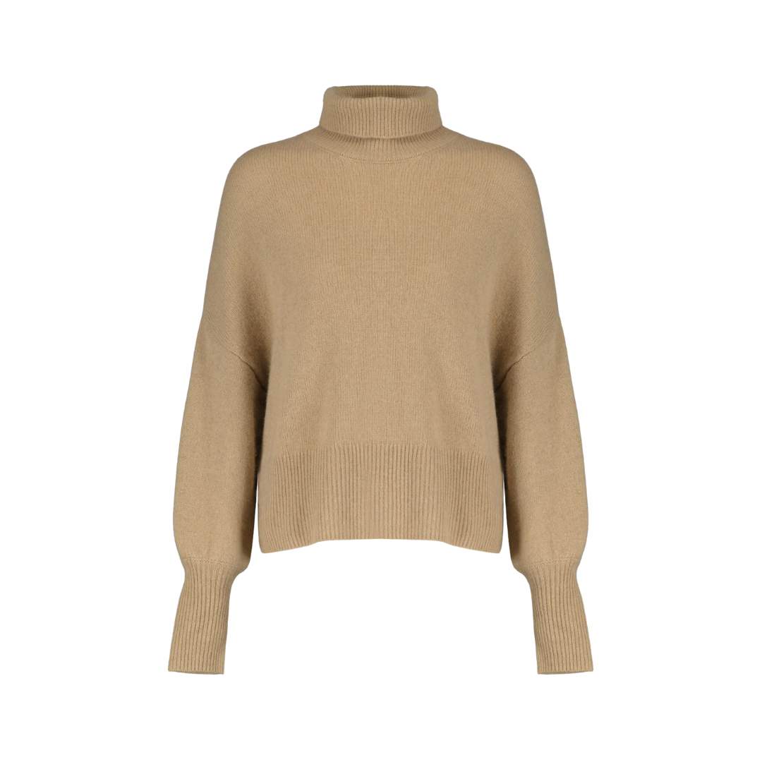 High neck sweater with loose fit in classic camel