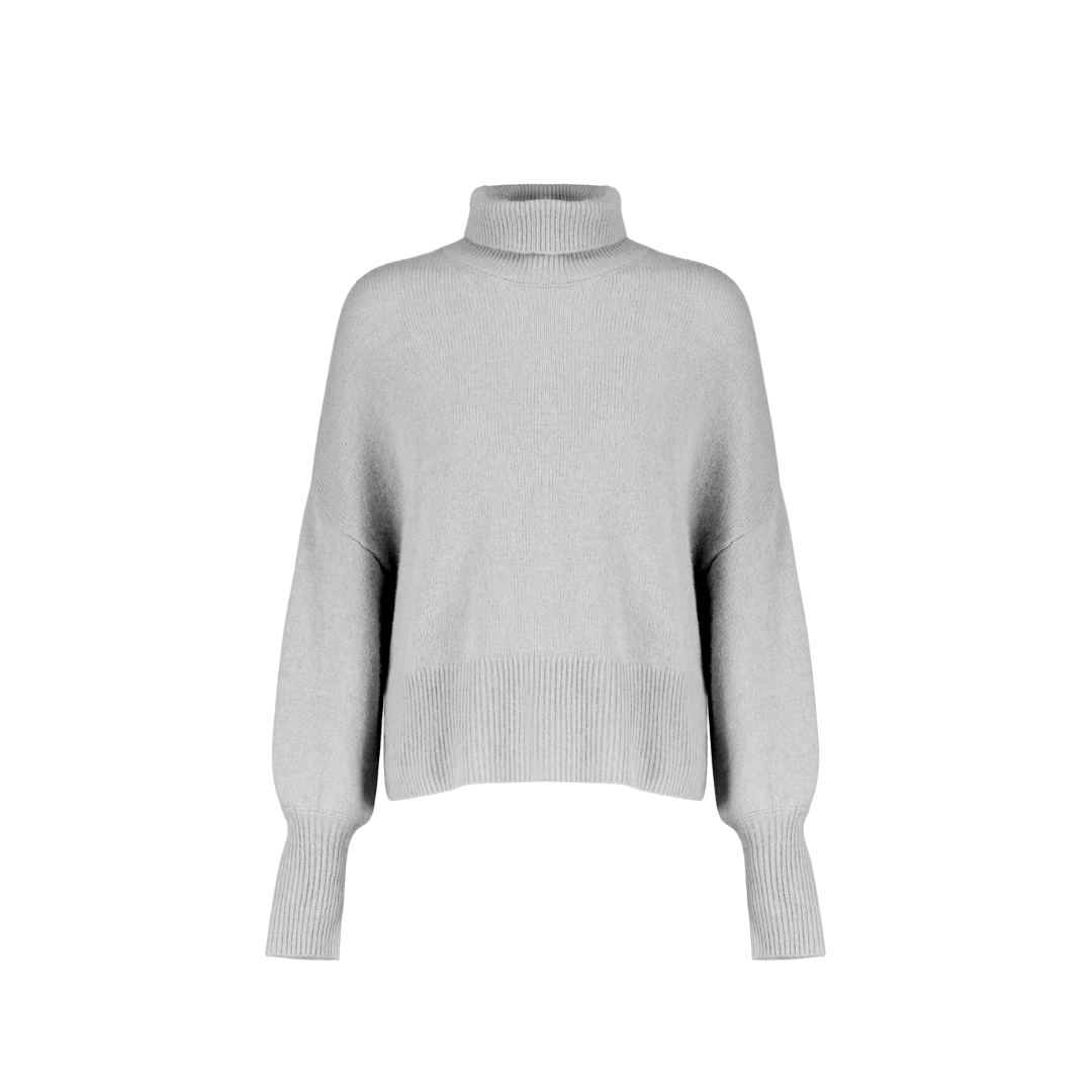 High neck sweater with loose fit in pearl grey.