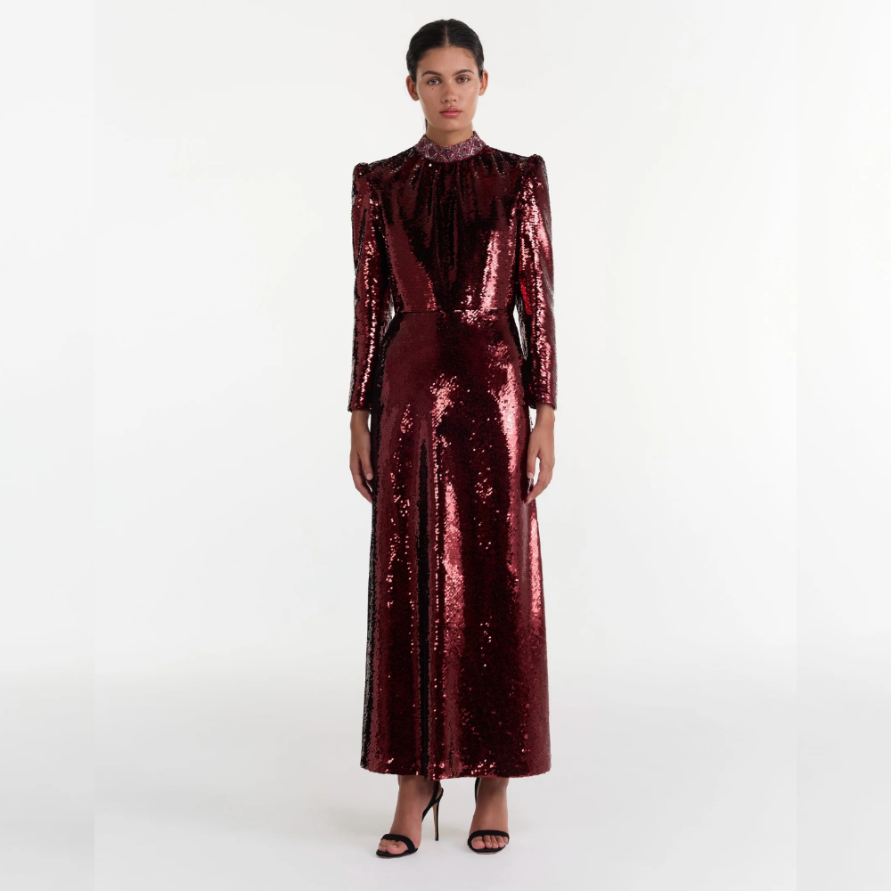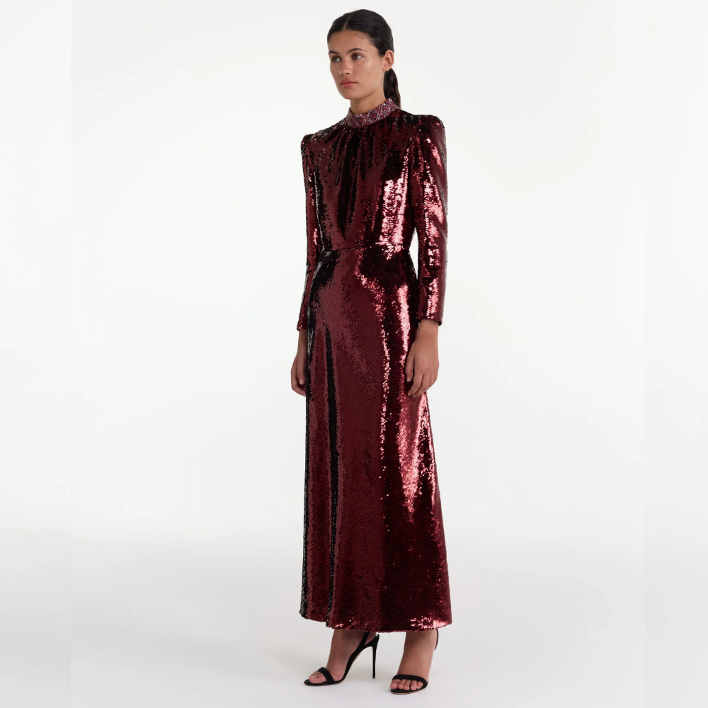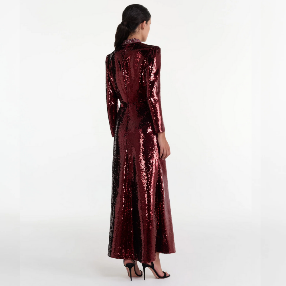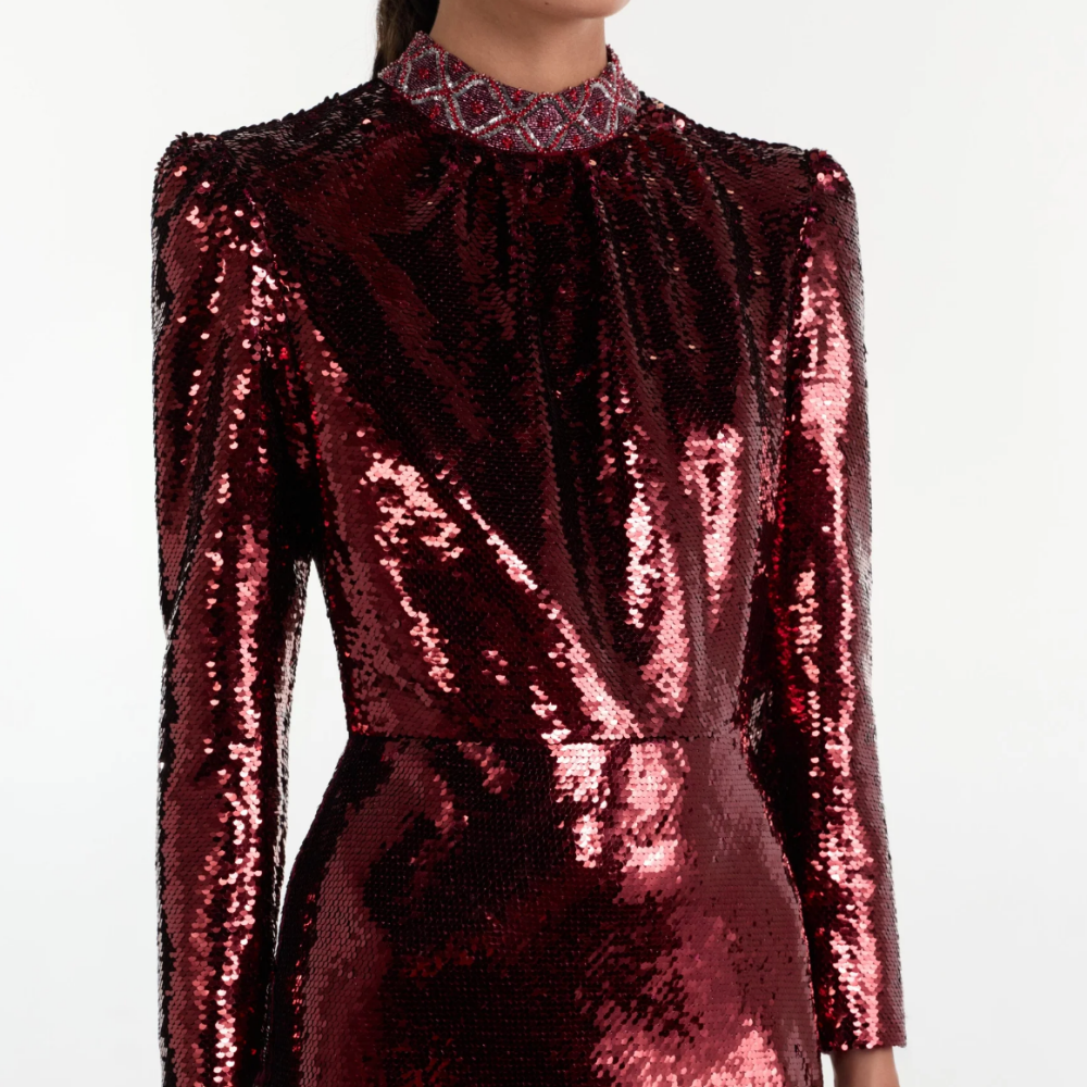 Saloni Jena Dress in shimmering deep burgundy sequins.