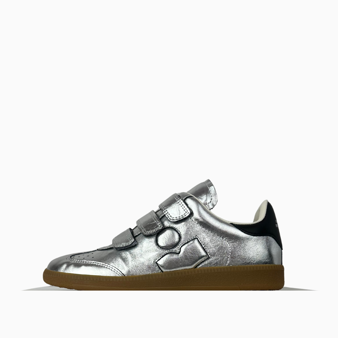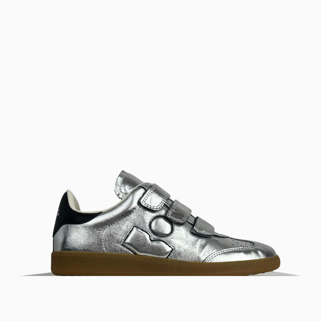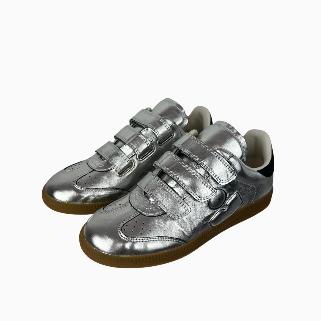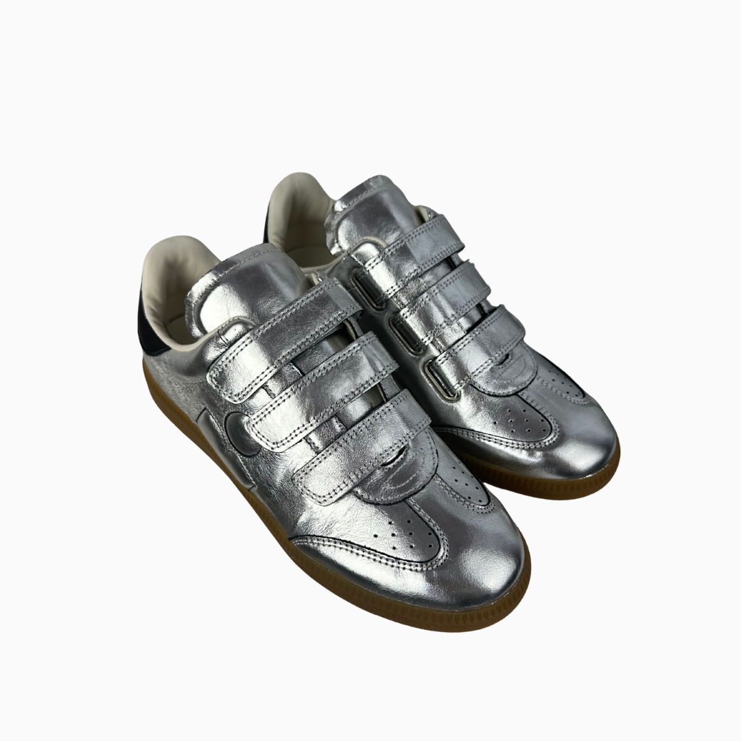 Isabel Marant Beth Sneakers in shiny silver leather with branded Marant logo