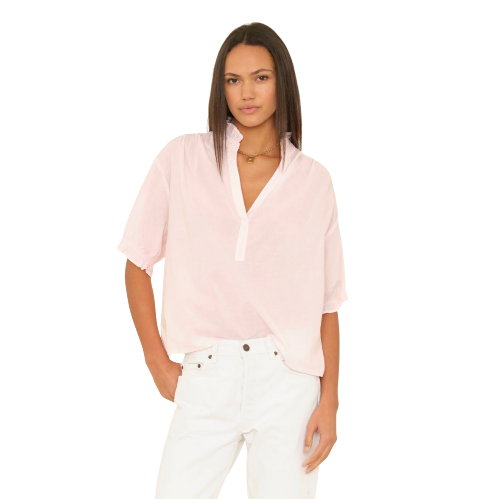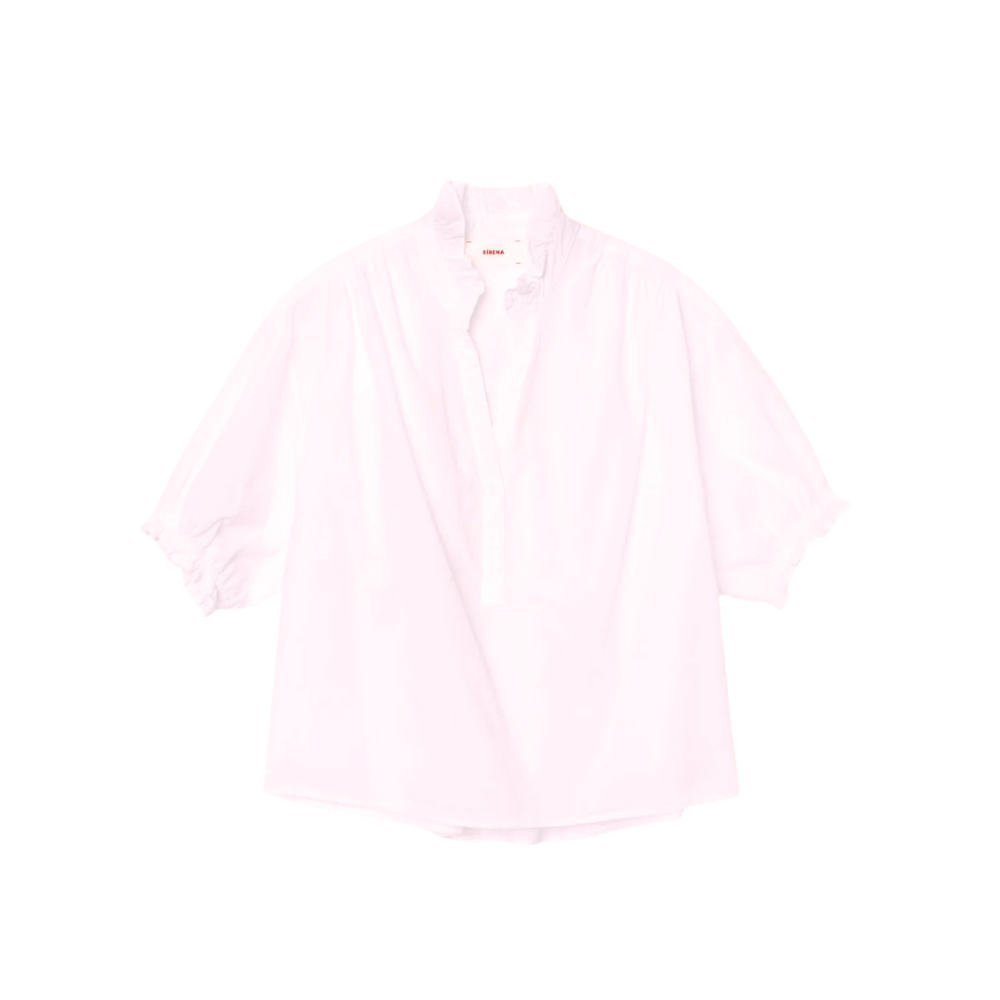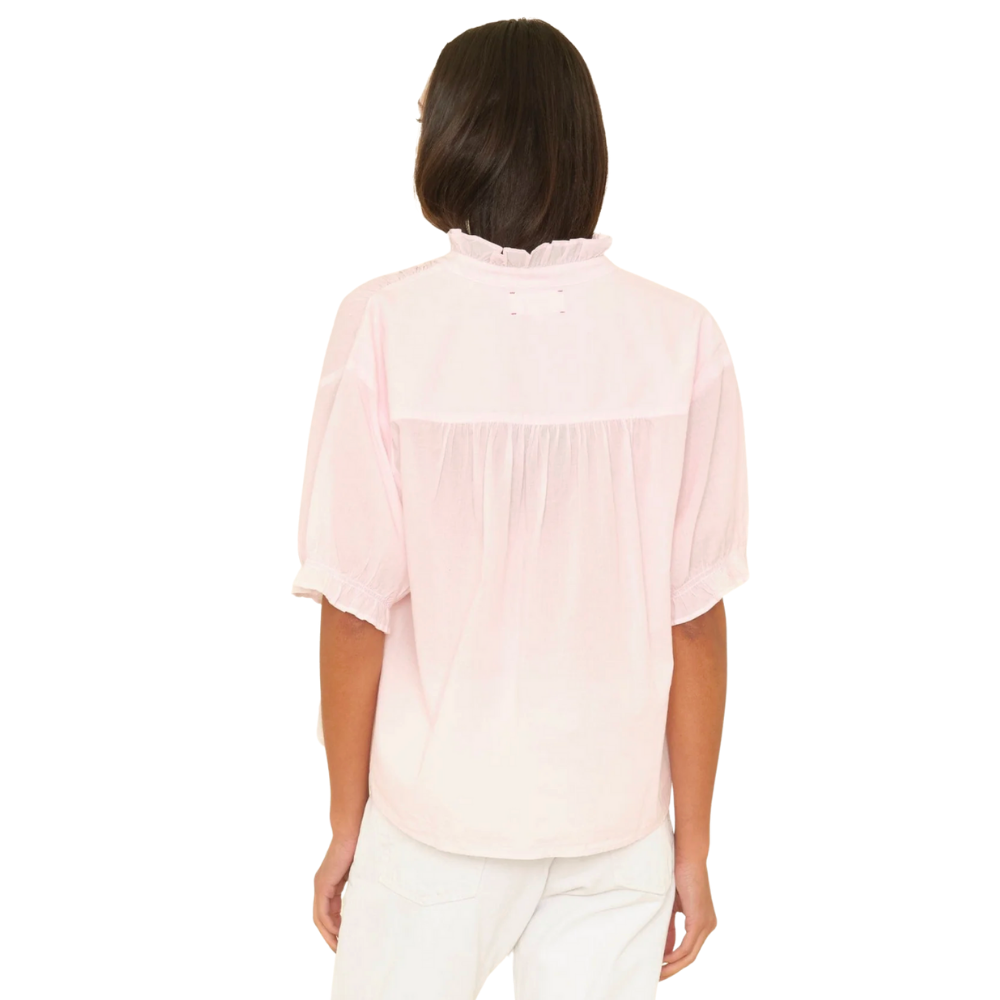 Romantic blouse with a high collar embellished by a small ruffle and elasticated