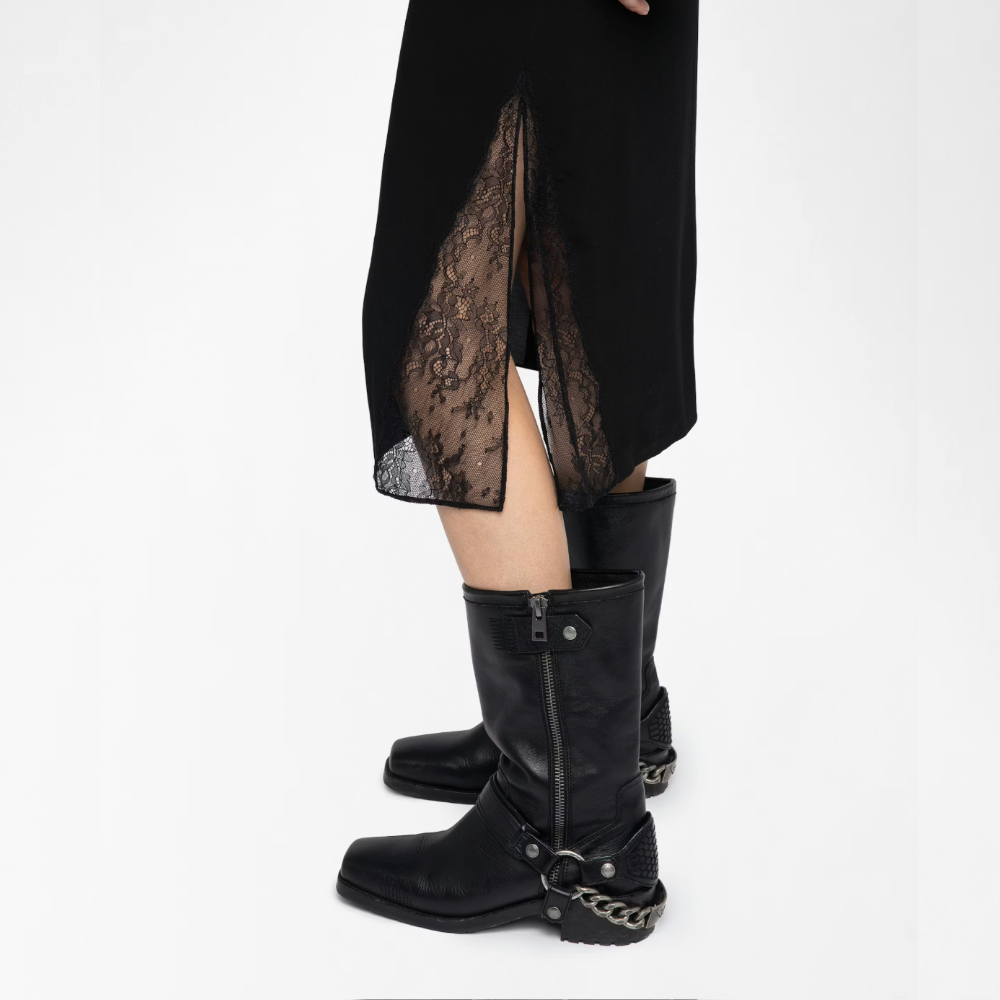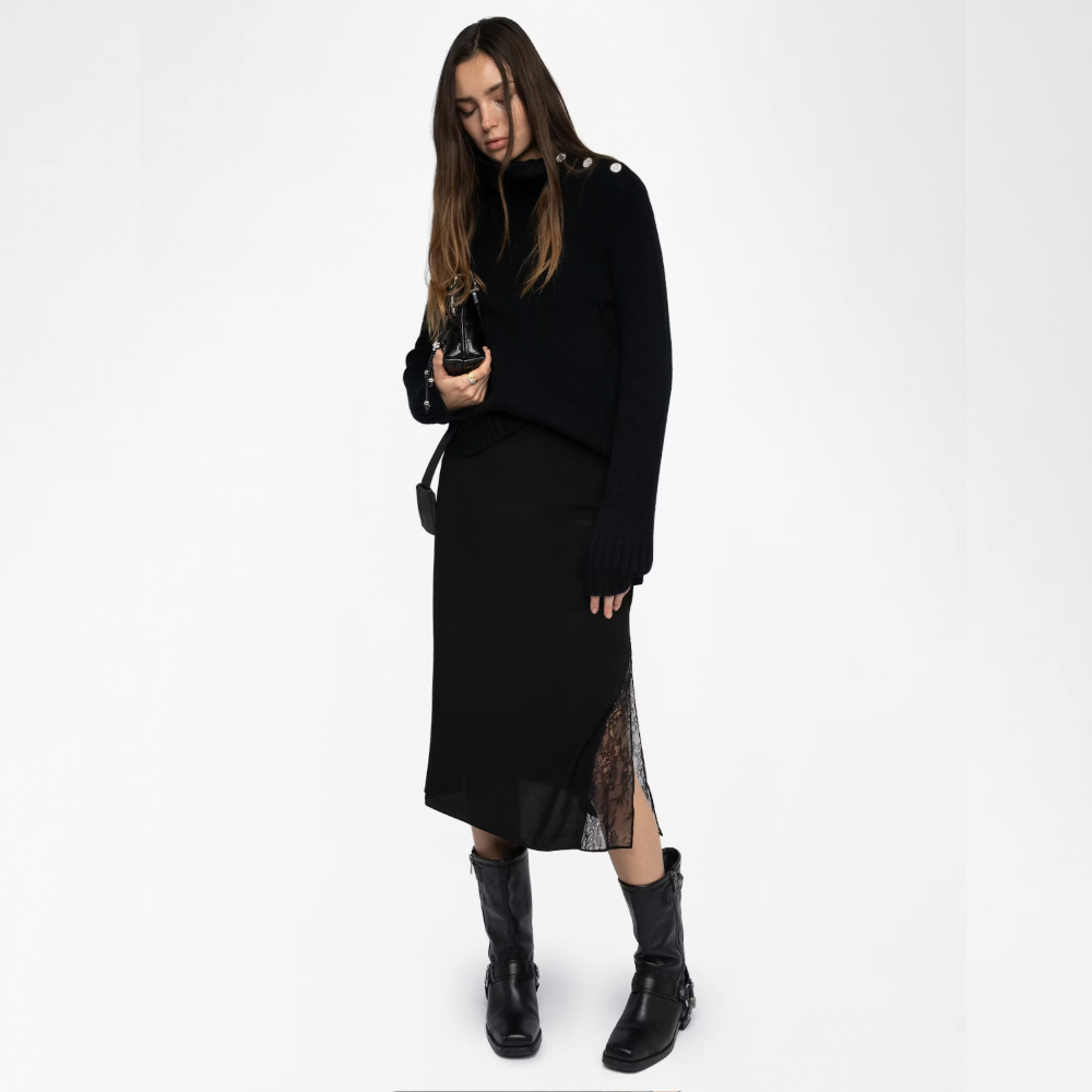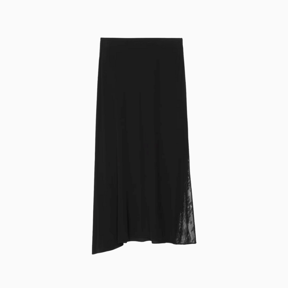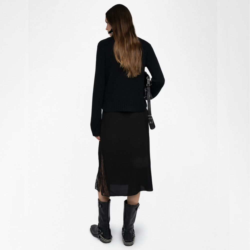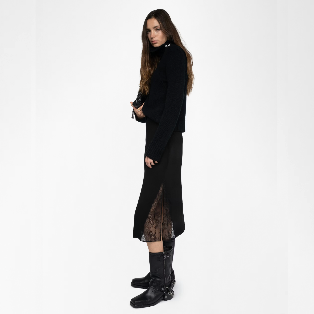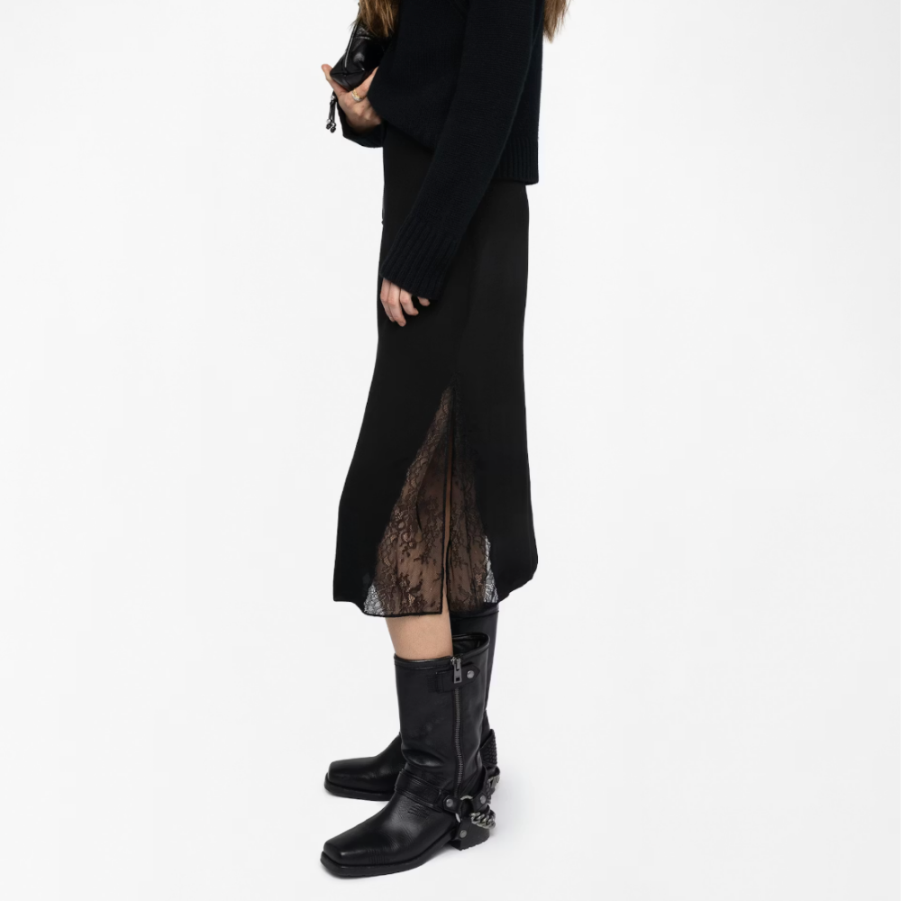Zadig & VoltaireFast & Free Delivery Nationwide Zadig & Voltaire Jayla Skirt in fluid black satin.Long skirt with slightly asymmetrical diagonal hem and side slit embellished with lace trim.100% Viscose
