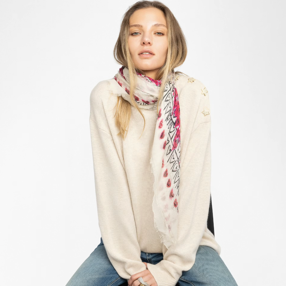 Fast & Free Delivery Nationwide Zadig & Voltaire Kerry scarf with tiny hearts print.Dimensions: 135 x 135 cm