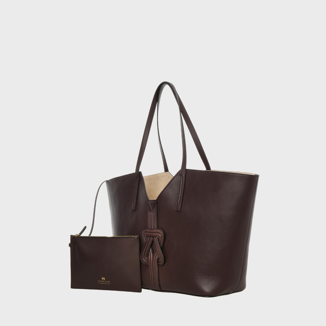 Exclusive for Costume, the Banbha tote bag in chocolate brown leather.