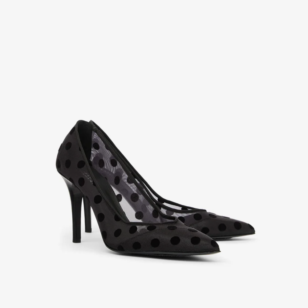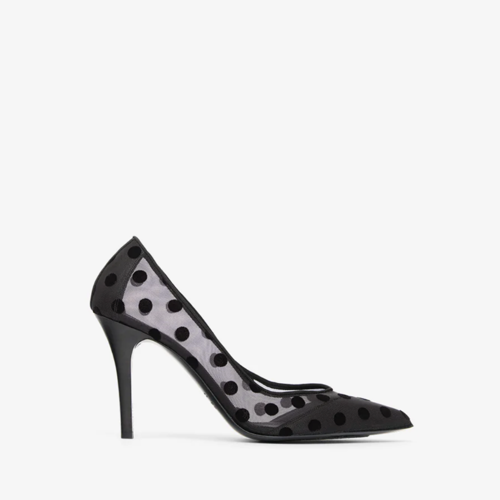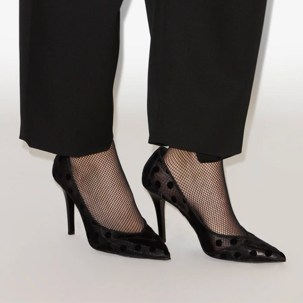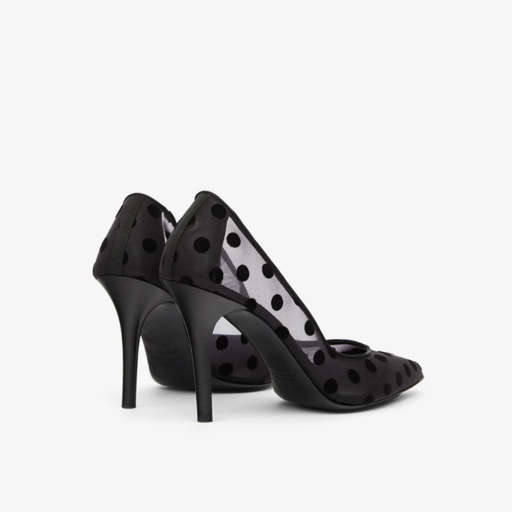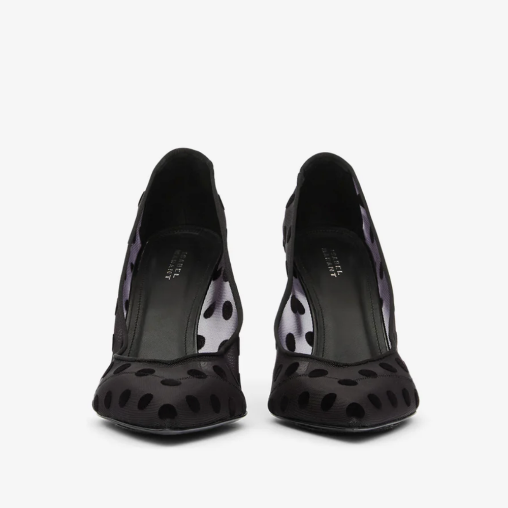 Isabel Marant Pristy pump shoes in black mesh with polka dots decoration throughout.