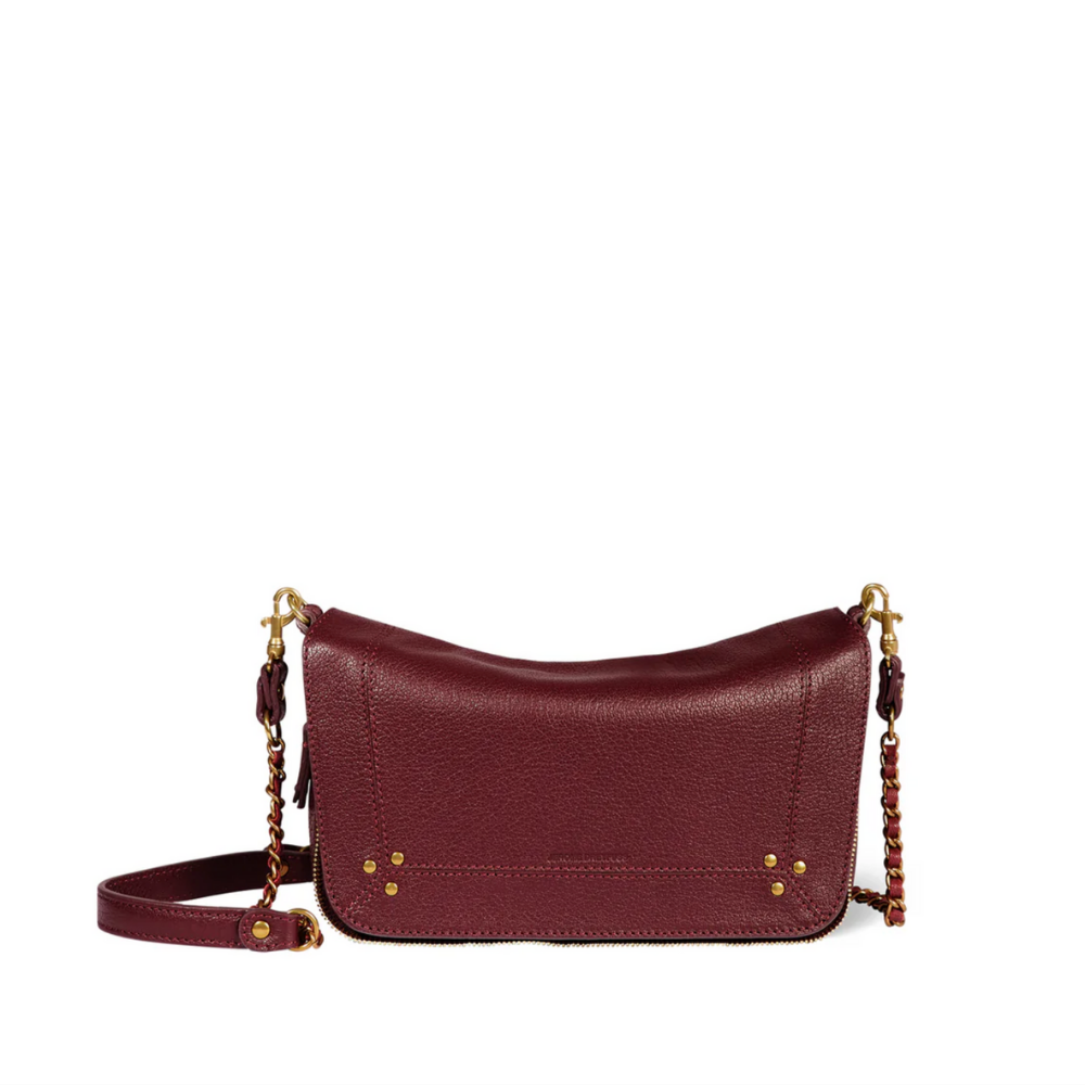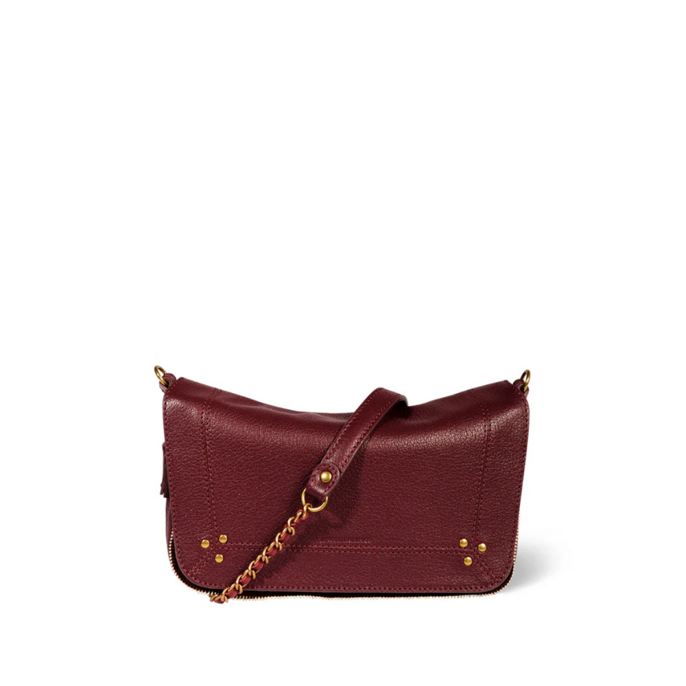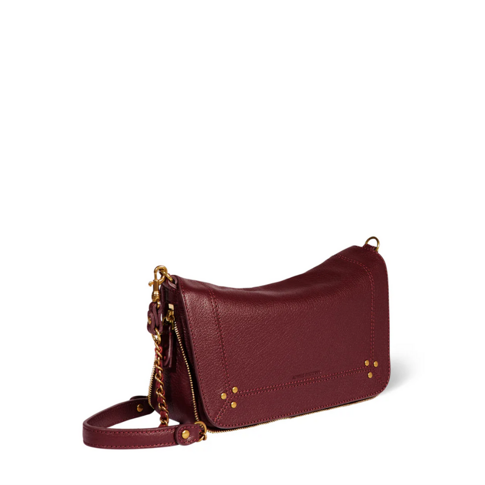 Bobi S in deep burnt red with brown tones, with brass gold hardware.