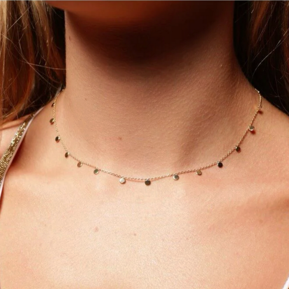 Josephine is a delicate necklace featuring small polished discs on a fine chain.