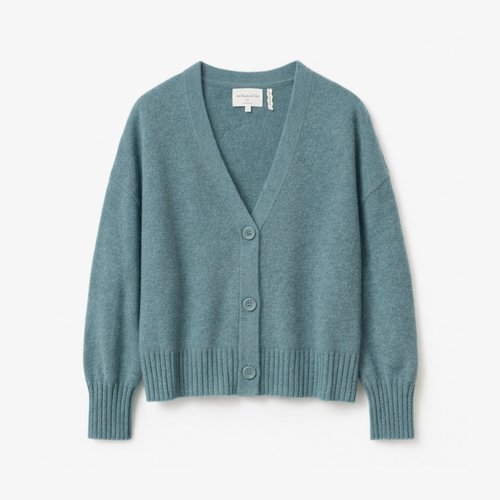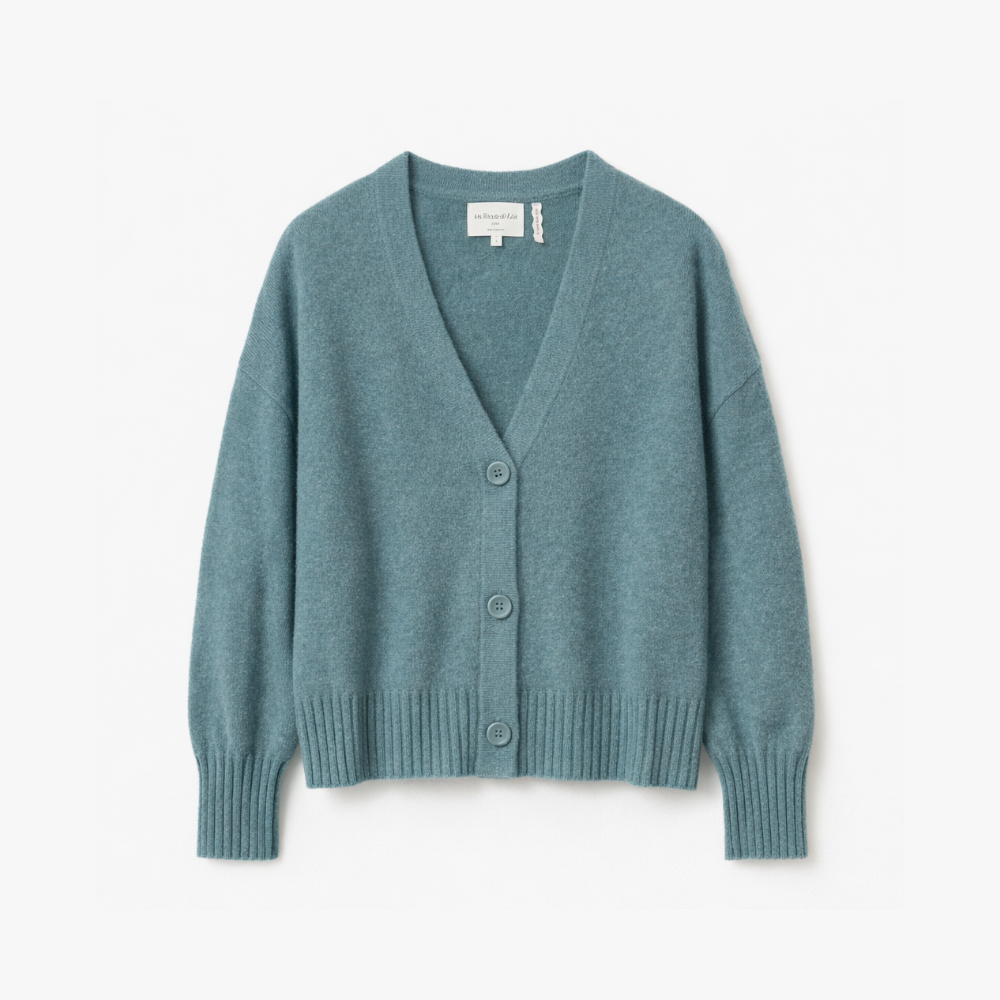 Luxurious cashmere cardigan with a relaxed fit in soft teal.