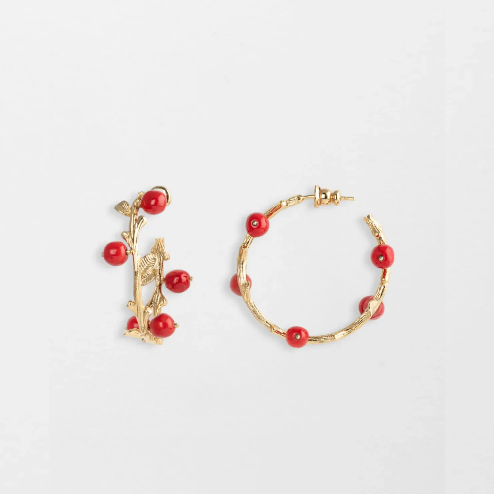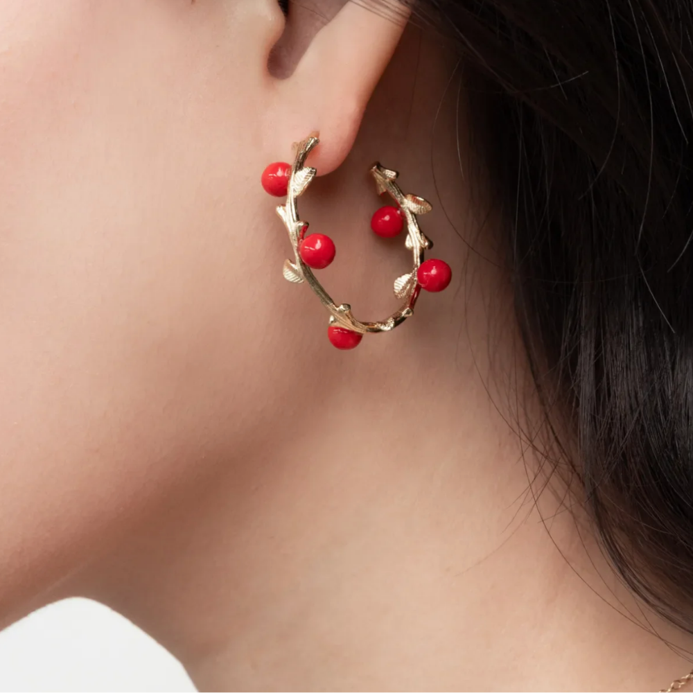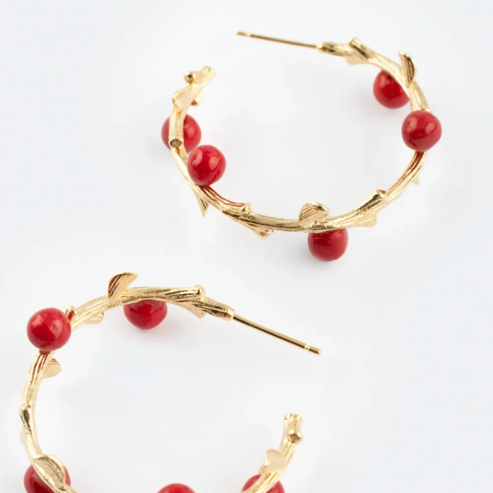Light golden hoops in the texture of a branch with little red porcelain berries running throughout.