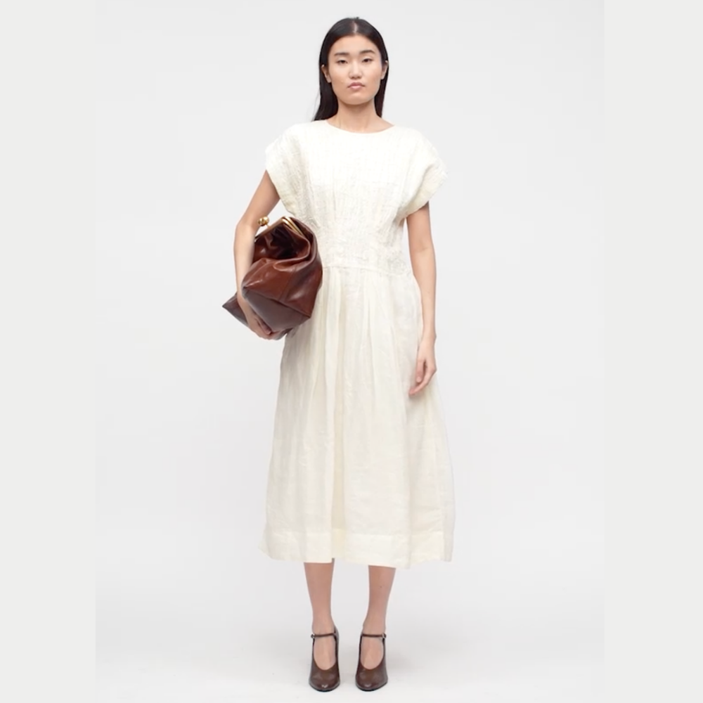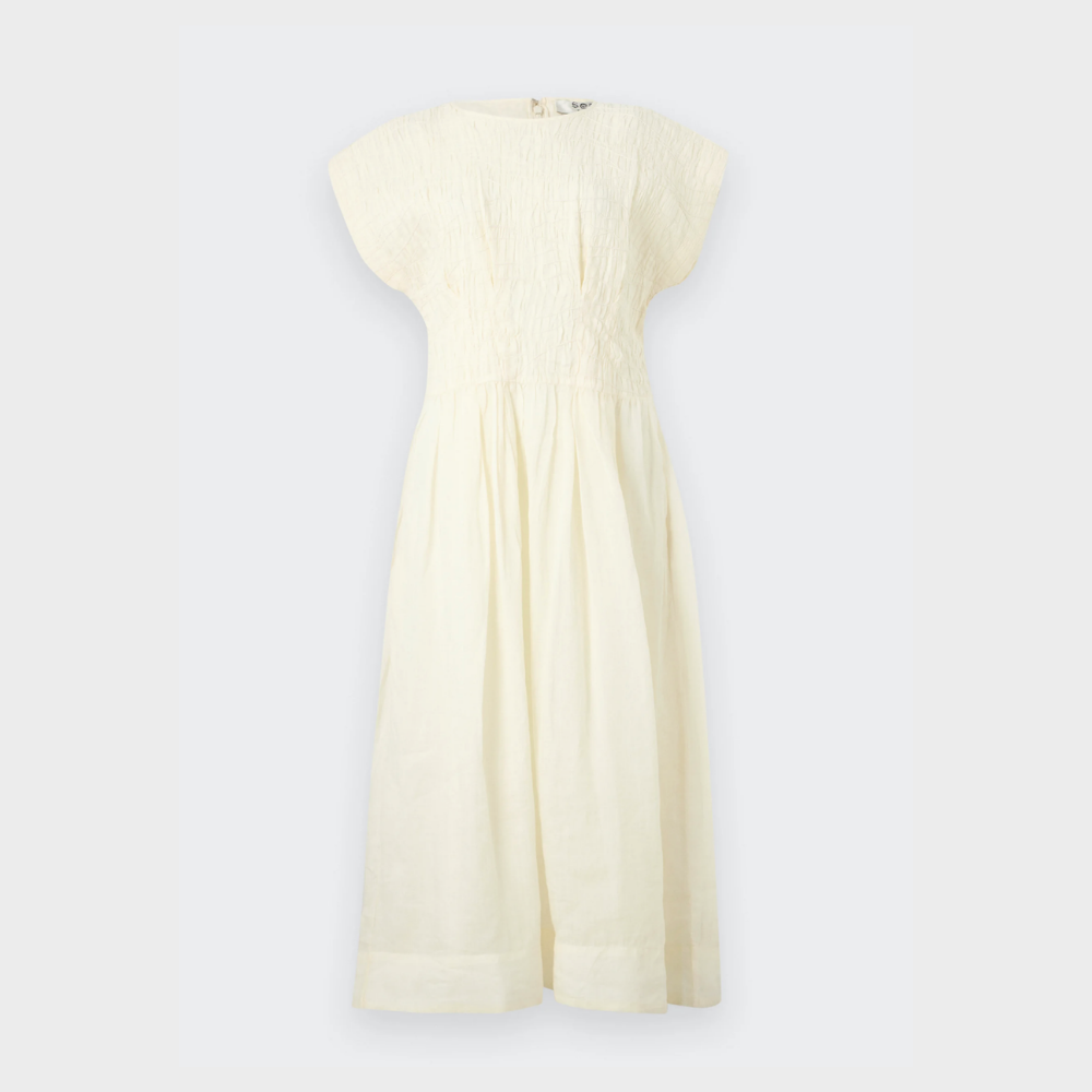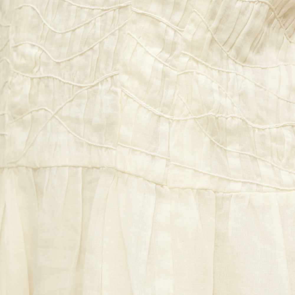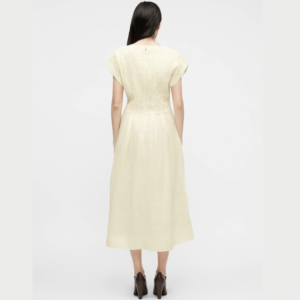 Simple and elegant midi dress featuring an intricate pin-tuck detailing on chest and waist.