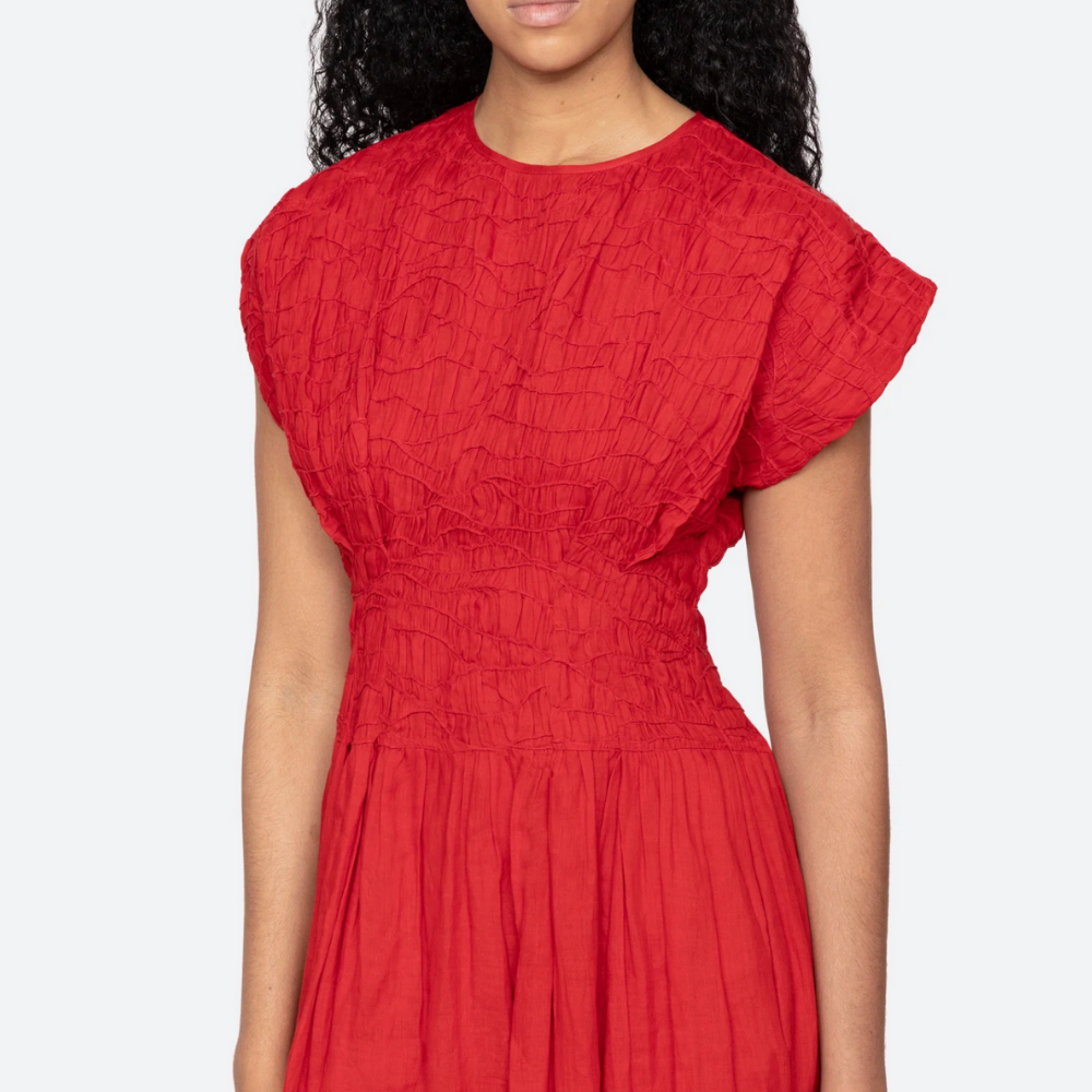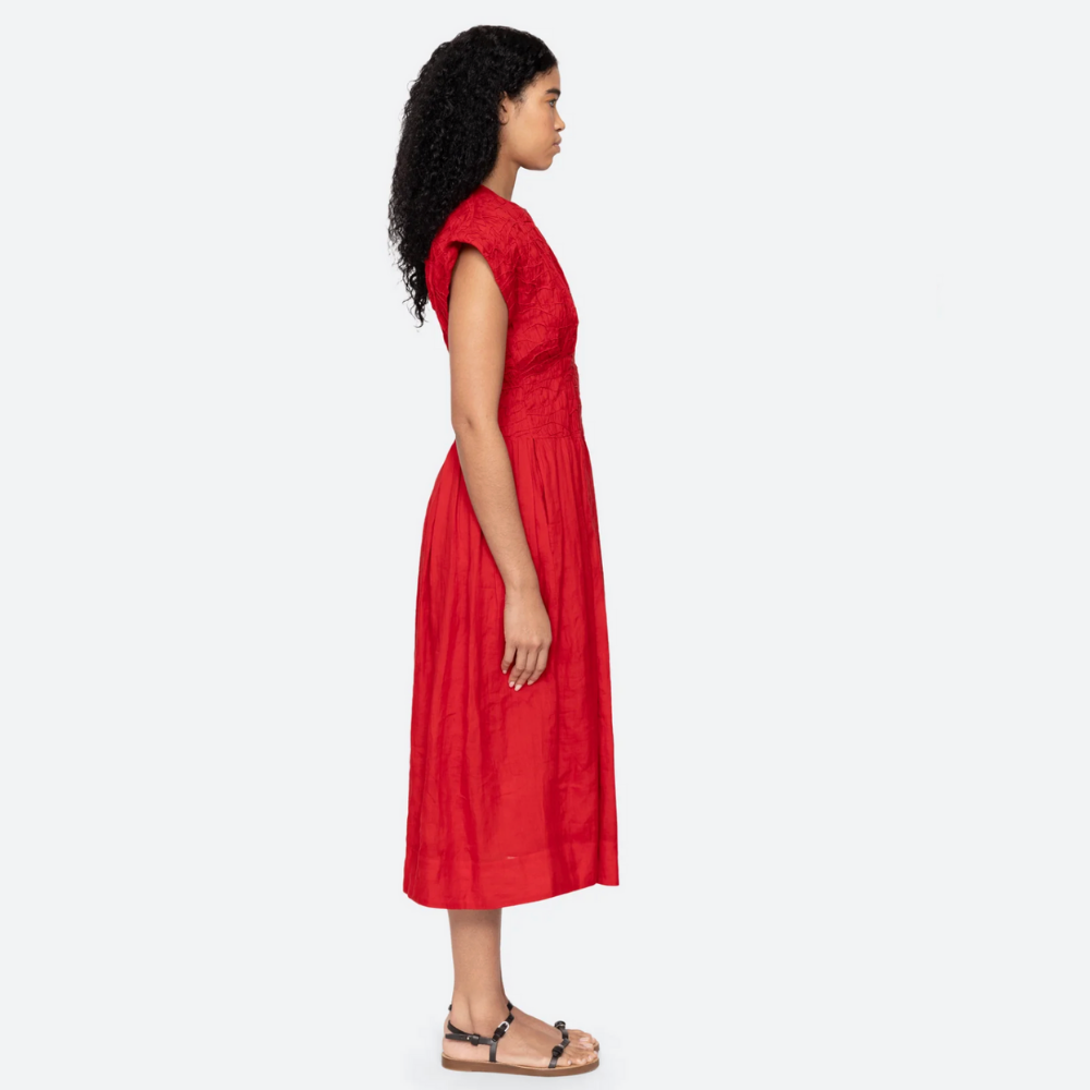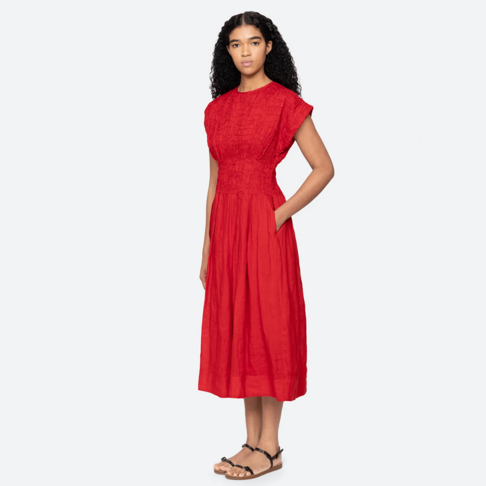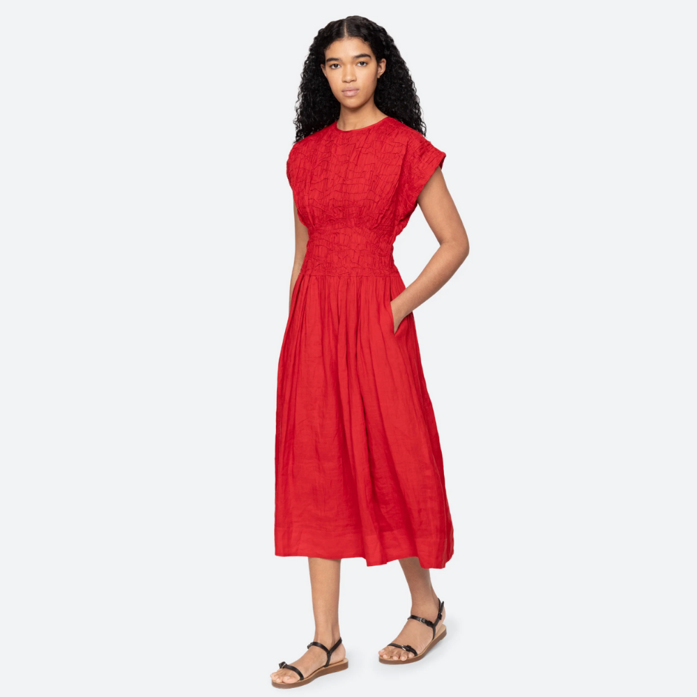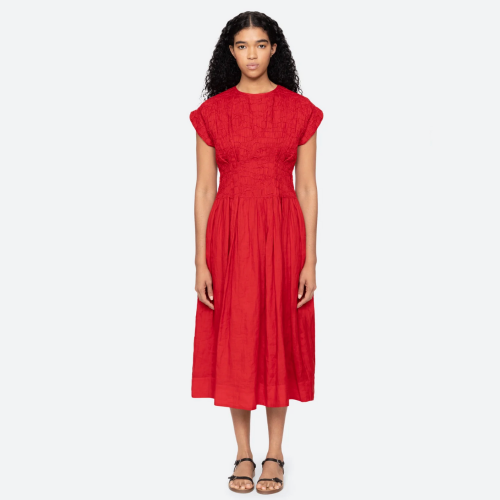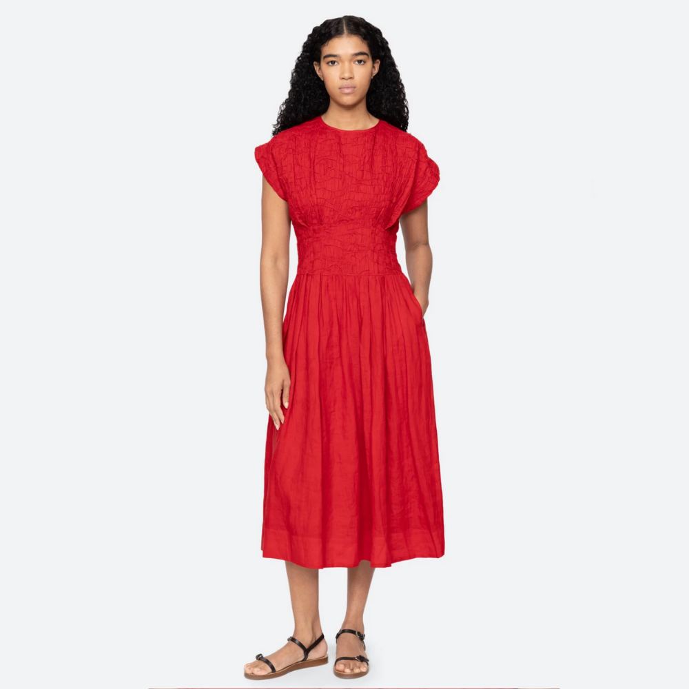 Simple and elegant midi dress featuring an intricate pin-tuck detailing on chest and waist.