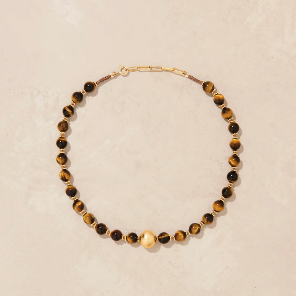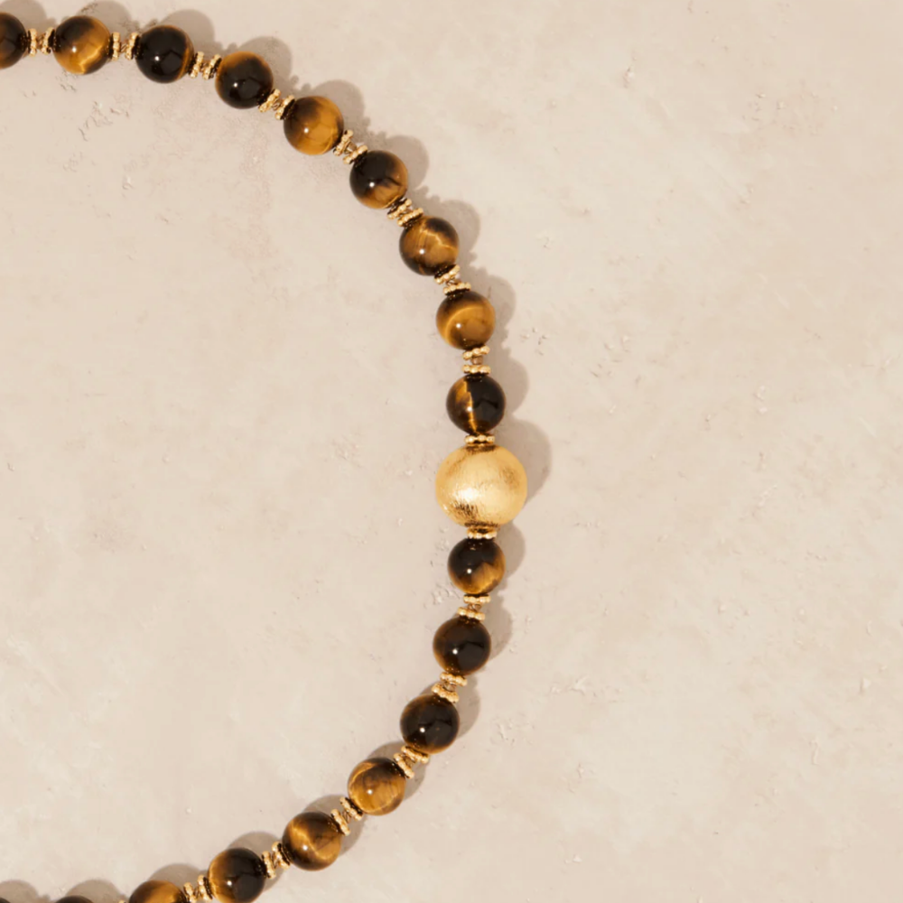 Tityaravy Samhita Necklace with tiger's eye spherical beads.