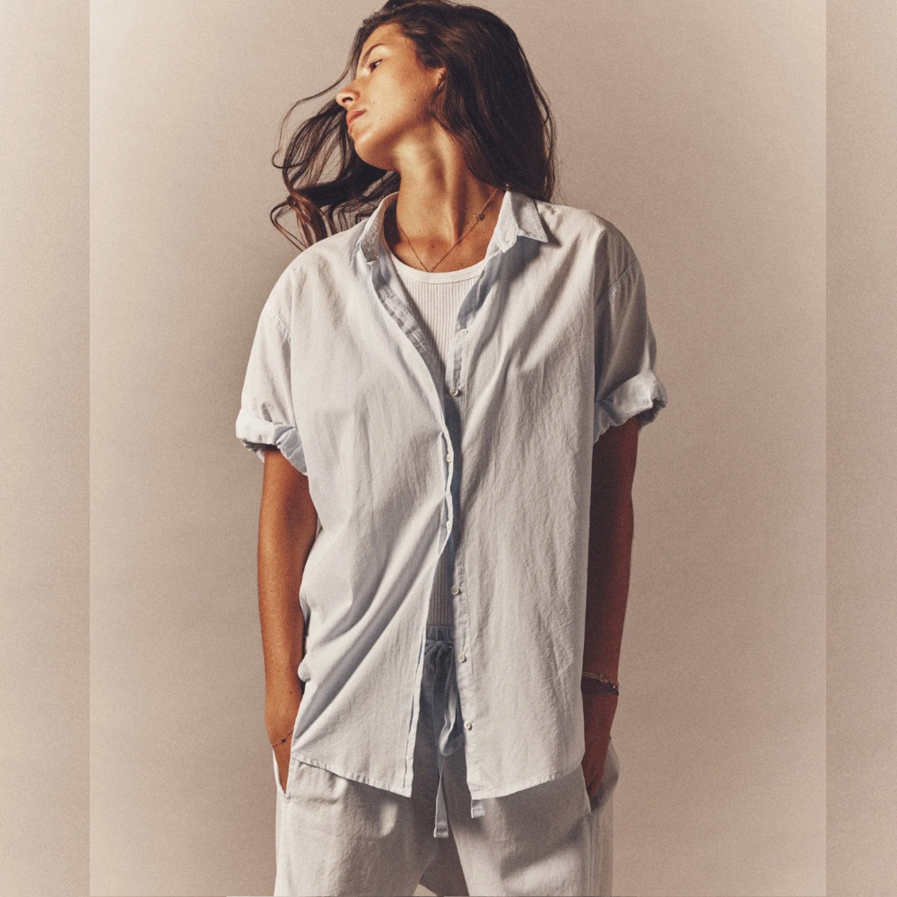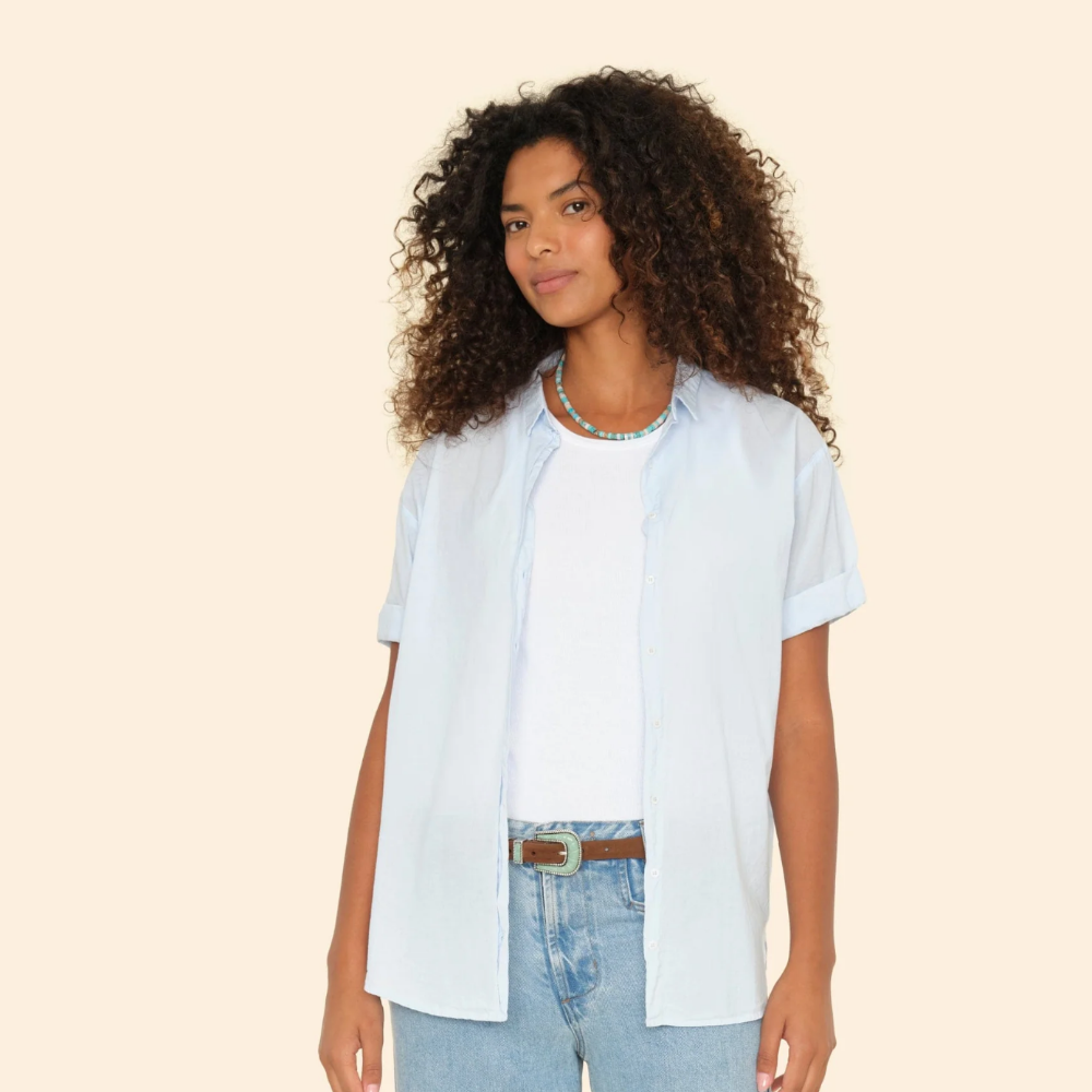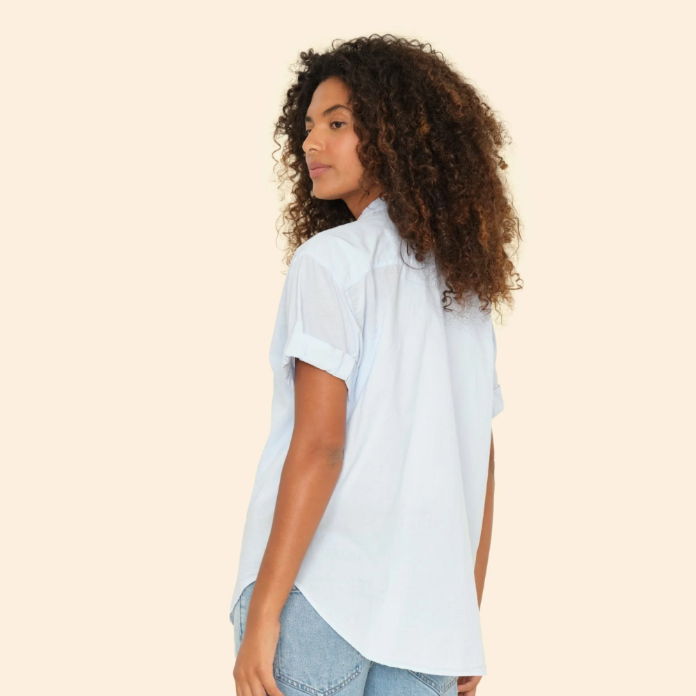 An essential basic made from classic lightweight woven cotton poplin in pastel blue.