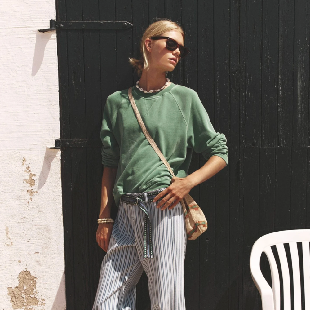 Classic sweatshirt in washed green french terry.