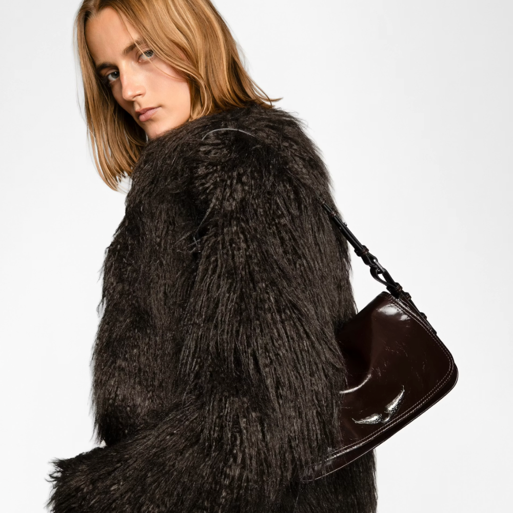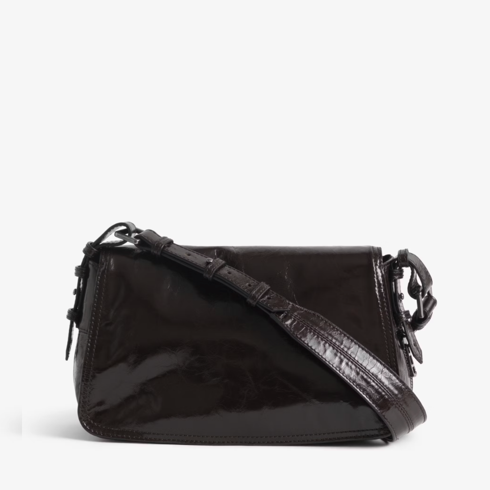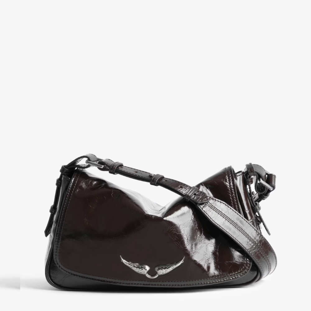 Zadig & Voltaire Le Zouzou bag in chocolate brown shiny patent leather.