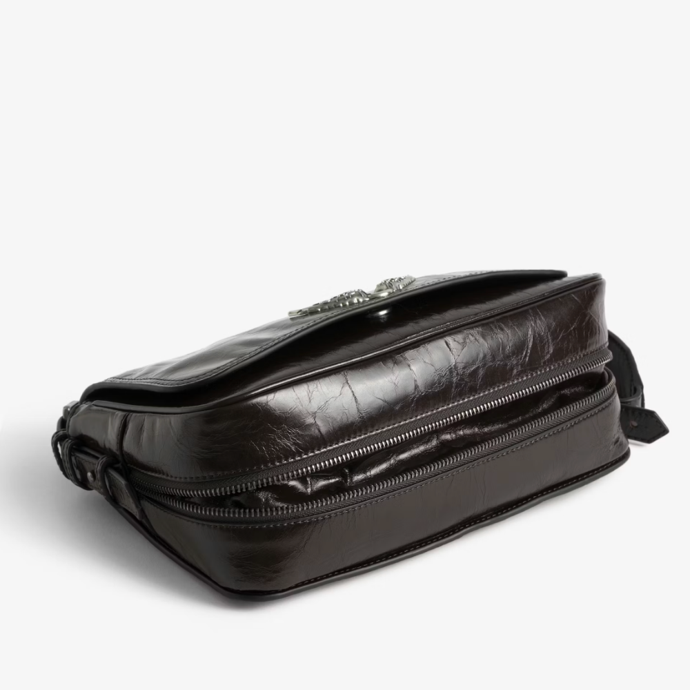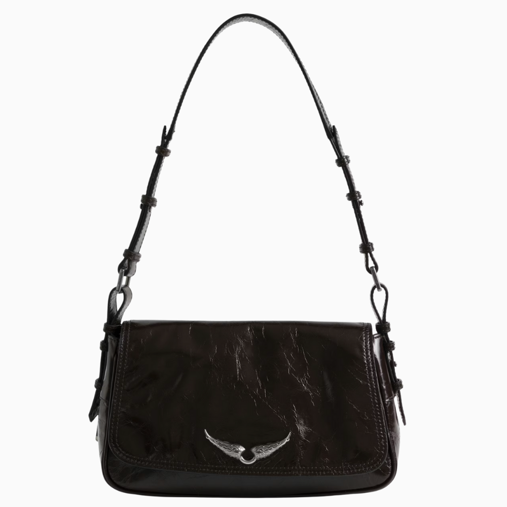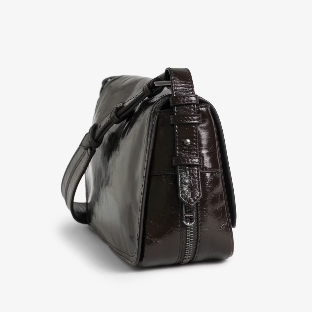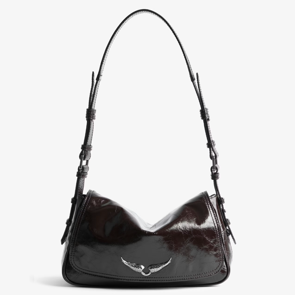 Zadig & Voltaire Le Zouzou bag in chocolate brown shiny patent leather.